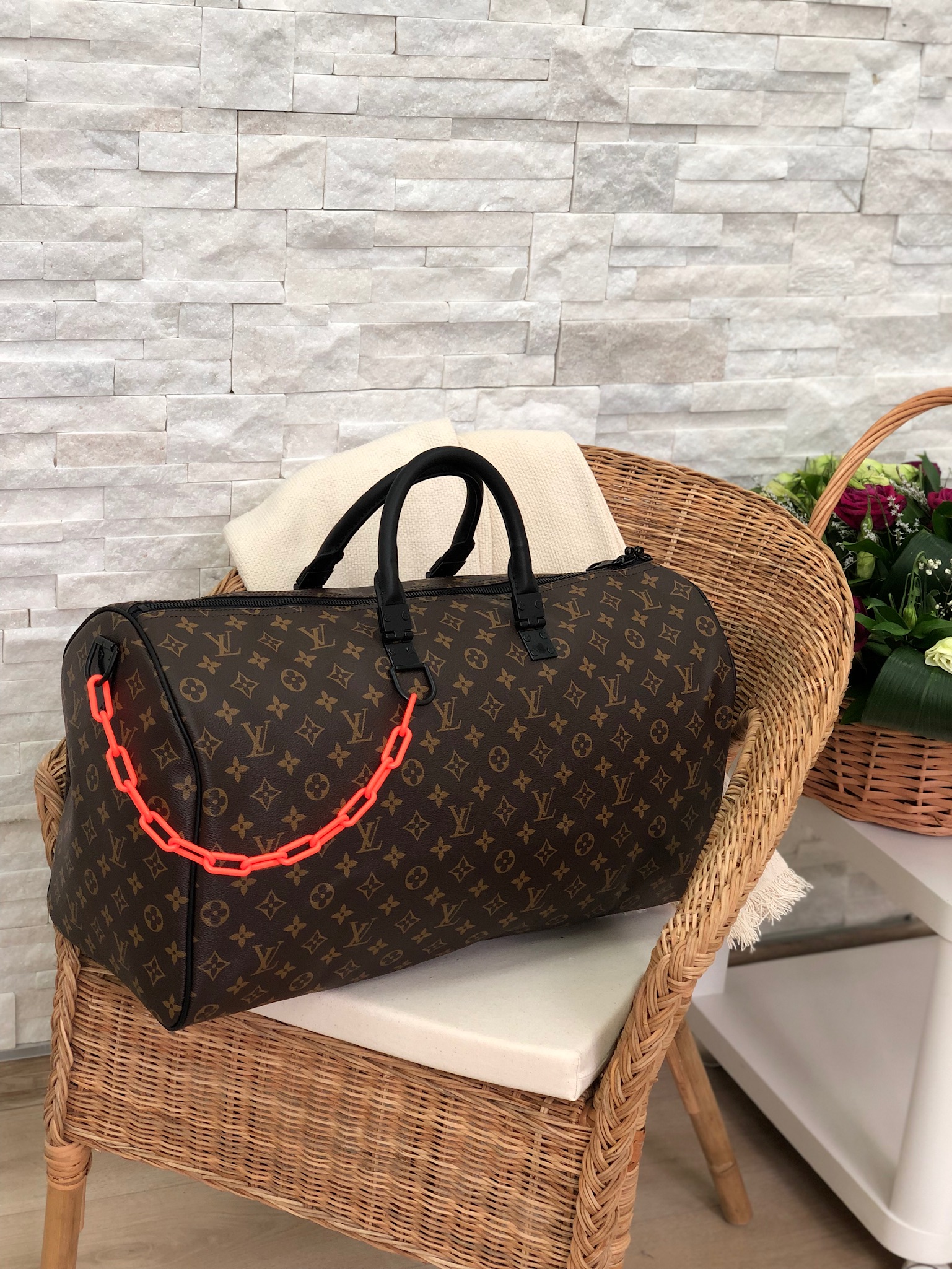 Louis Vuitton дорожная сумка LUX-15847 представляет собой стильный аксессуар, выполненный в узнаваемом дизайне бренда. Ее коричневый цвет и классический монограммный принт придают ей элегантность, а яркая оранжевая цепь добавляет современный акцент. Благодаря вместительности и прочности, эта сумка идеально подходит для путешествий, деловых поездок или в качестве вместительной повседневной сумки.