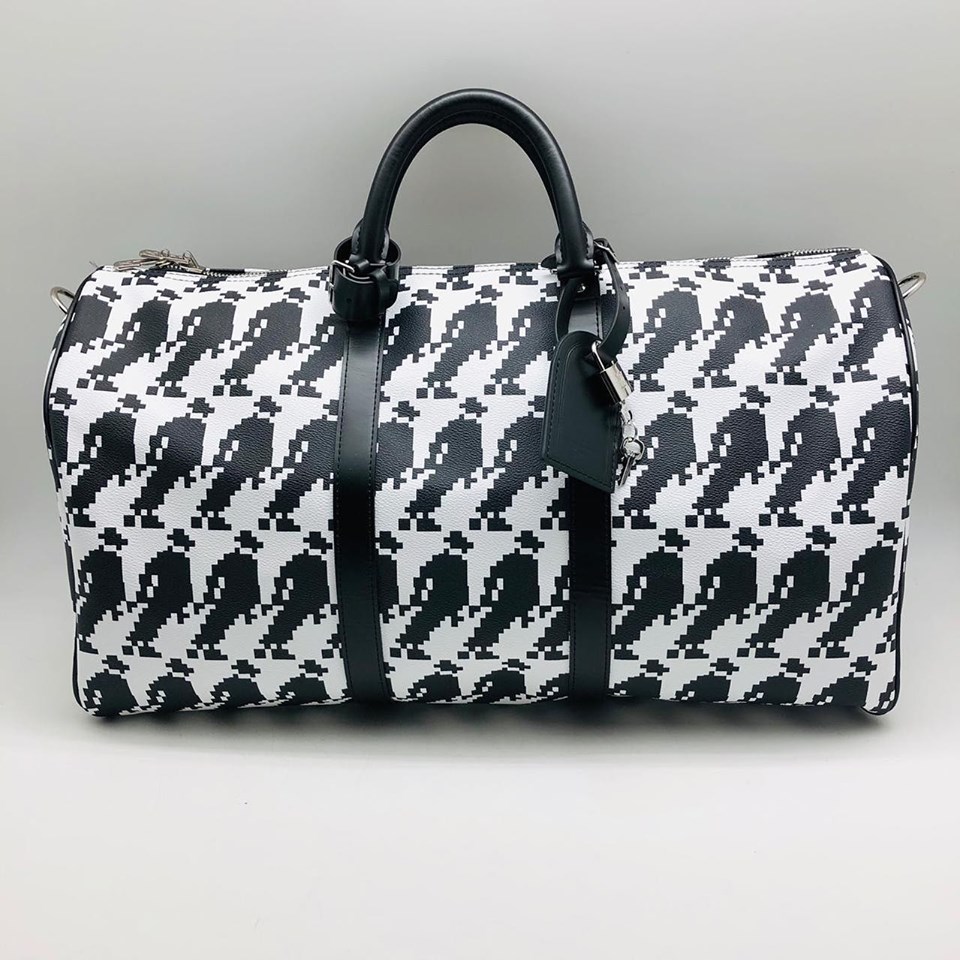 Louis Vuitton сумка дорожная LUX-19699 — это стильная и вместительная сумка, выполненная в оригинальном черно-белом принте, который привлекает внимание. Ее классическая форма и качественные материалы делают ее идеальным спутником для путешествий или как вместительную повседневную сумку.