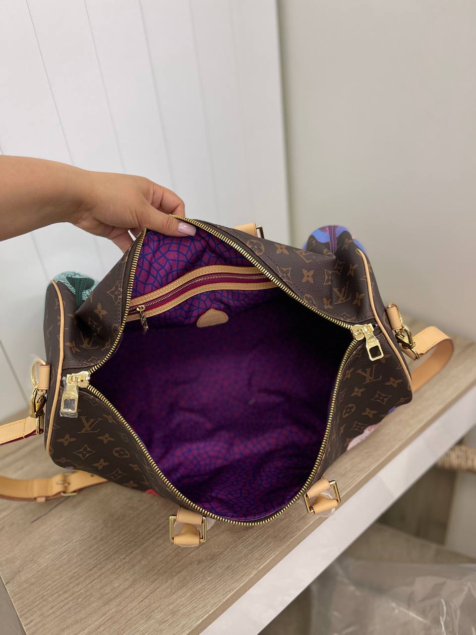 Сумка дорожная 45см Louis Vuitton LUX-93672 — воплощение стиля и практичности. Она выполнена в узнаваемом дизайне Louis Vuitton с фирменным узором, а также яркими элементами. Эта дорожная сумка идеально подходит для путешествий и повседневного использования, сочетая в себе элегантность и функциональность.