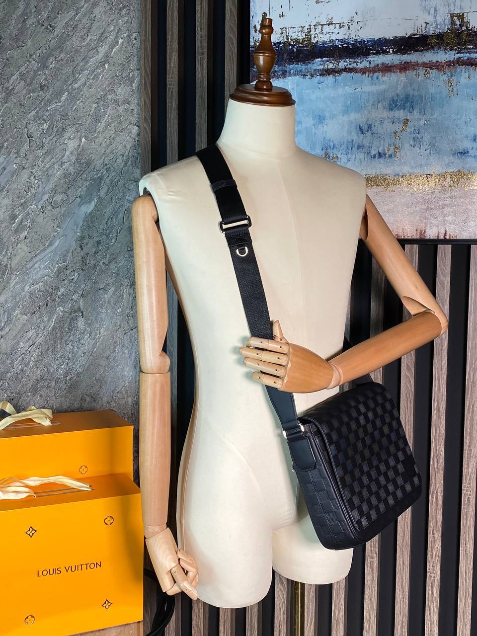 Сумка мужская Louis Vuitton LUX-114484 — это элегантный аксессуар, выполненный в классическом стиле. Сумка выполнена в черном цвете, с характерным для бренда плетением, имеет прямоугольную форму и подходит для повседневного использования.
