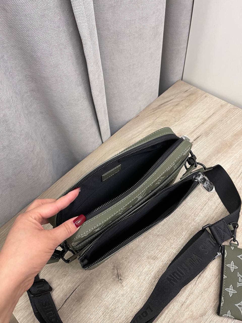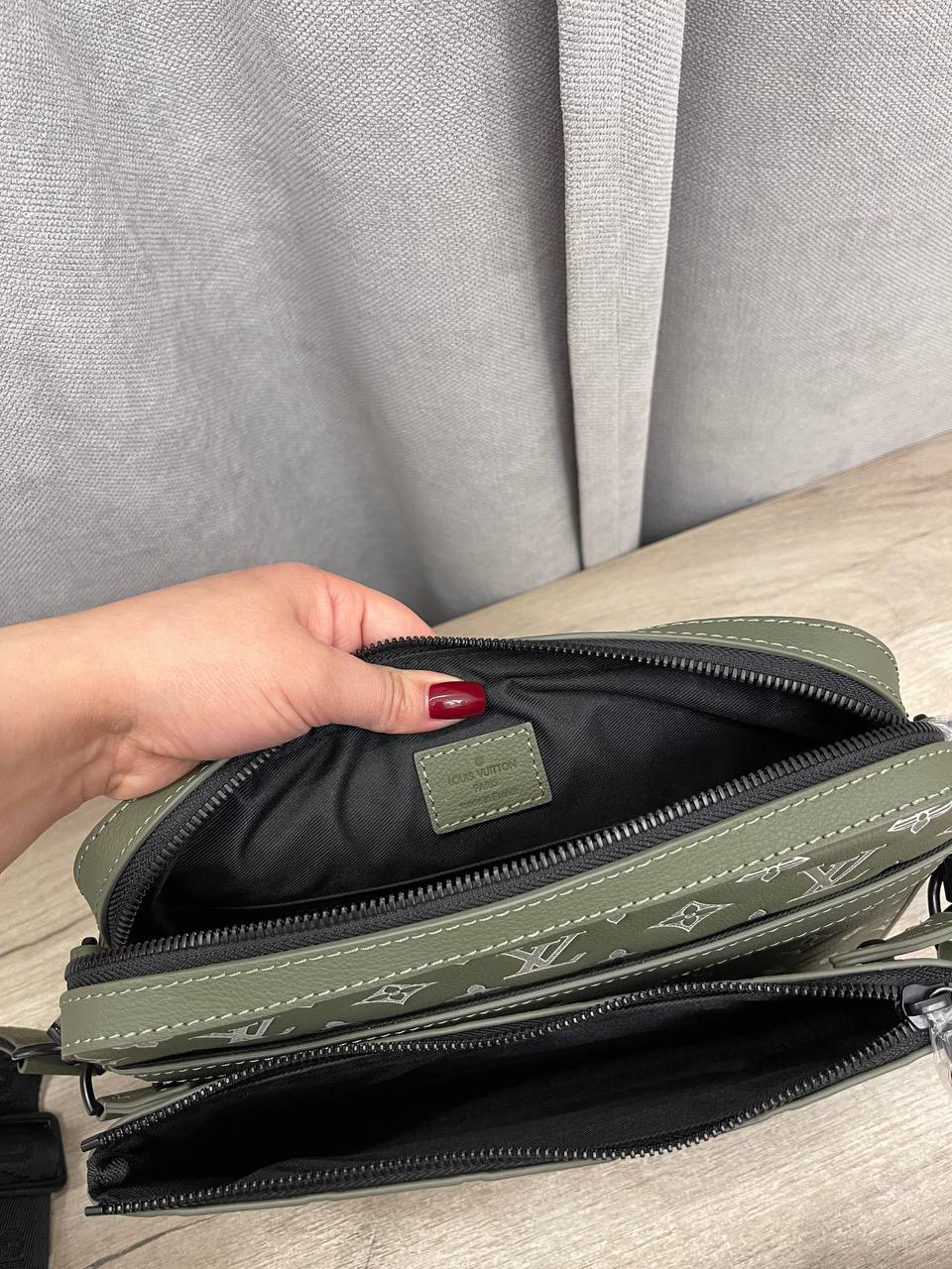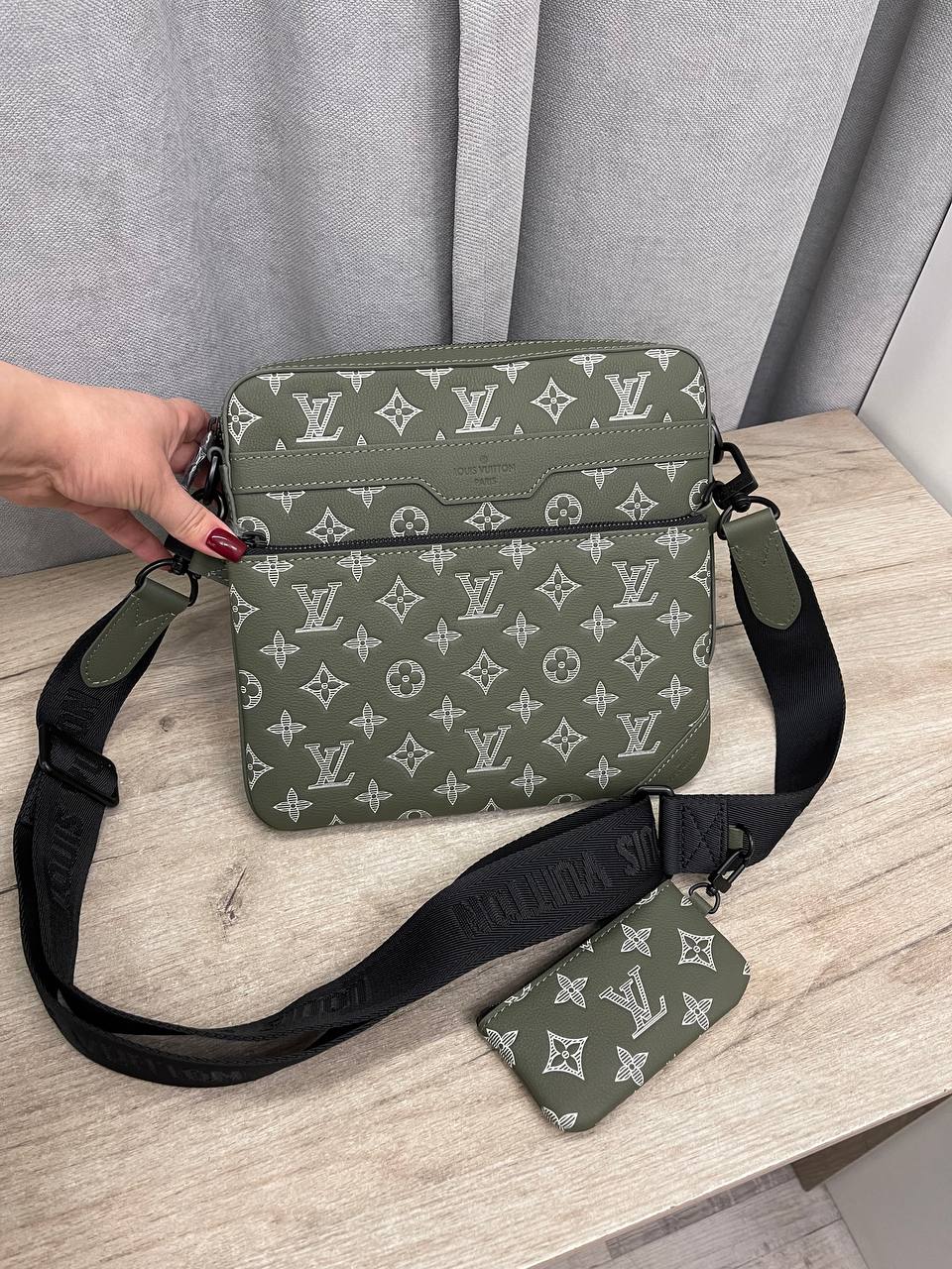Мужская сумка Louis Vuitton LUX-114789 выполнена в стиле casual и отличается узнаваемым дизайном. Основной цвет – оливковый, с белым узором монограммы бренда. Сумка имеет прямоугольную форму, а также плечевой ремень.