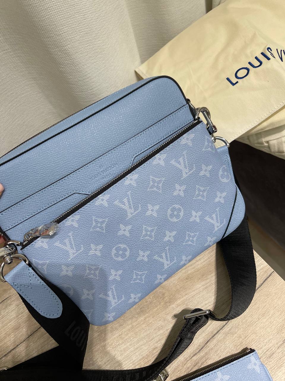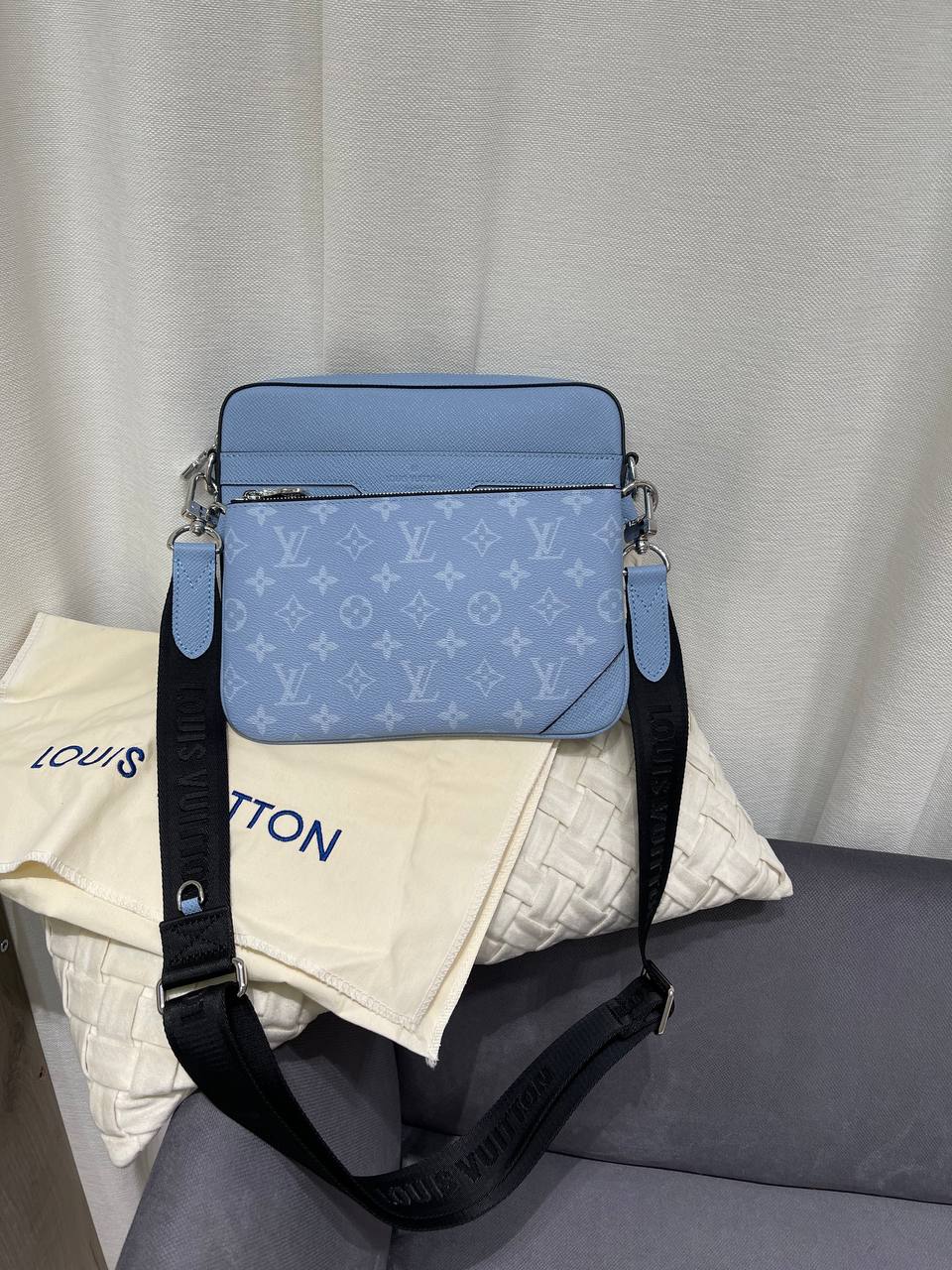 Мужская сумка Louis Vuitton LUX-119868 выполнена в современном дизайне с фирменным узором Monogram. Сумка выполнена в сочетании двух оттенков голубого цвета, что делает ее стильной и узнаваемой. Она подходит для повседневного использования, сочетая в себе функциональность и элегантность.