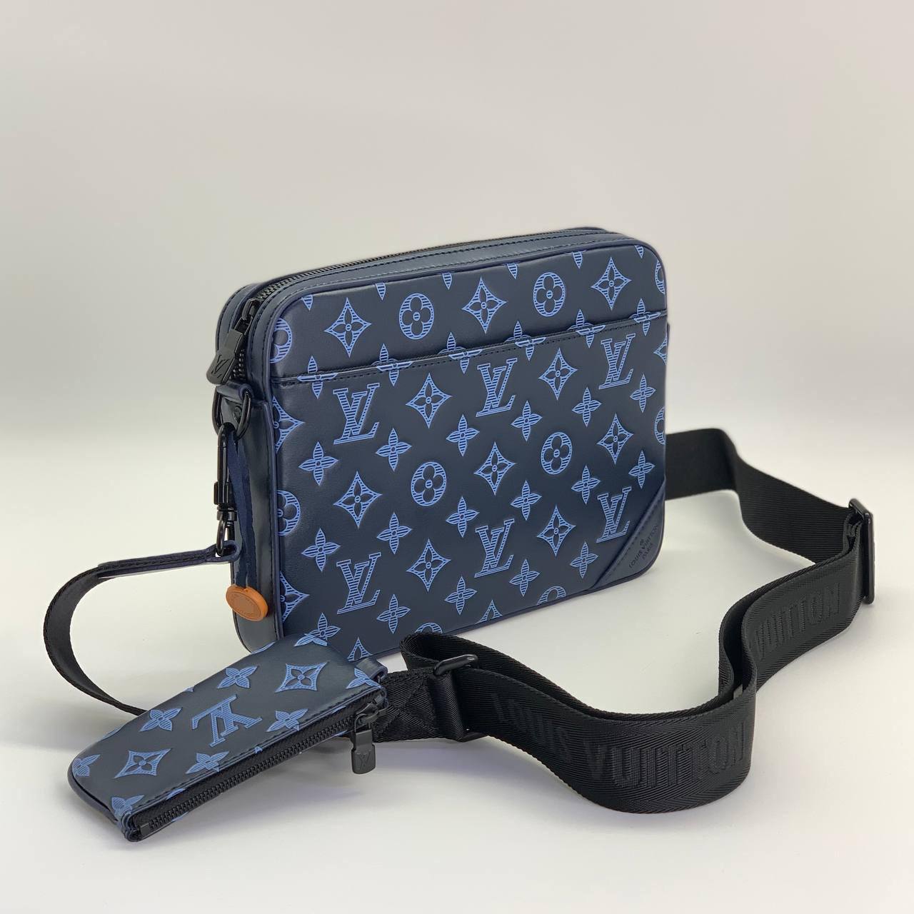 Сумка мужская Louis Vuitton LUX-76573 — это стильный аксессуар, который подчеркнет индивидуальность. Темно-синий цвет с выгравированным монограммным узором придает сумке роскошный вид. Этот аксессуар станет отличным дополнением к повседневному или деловому образу.