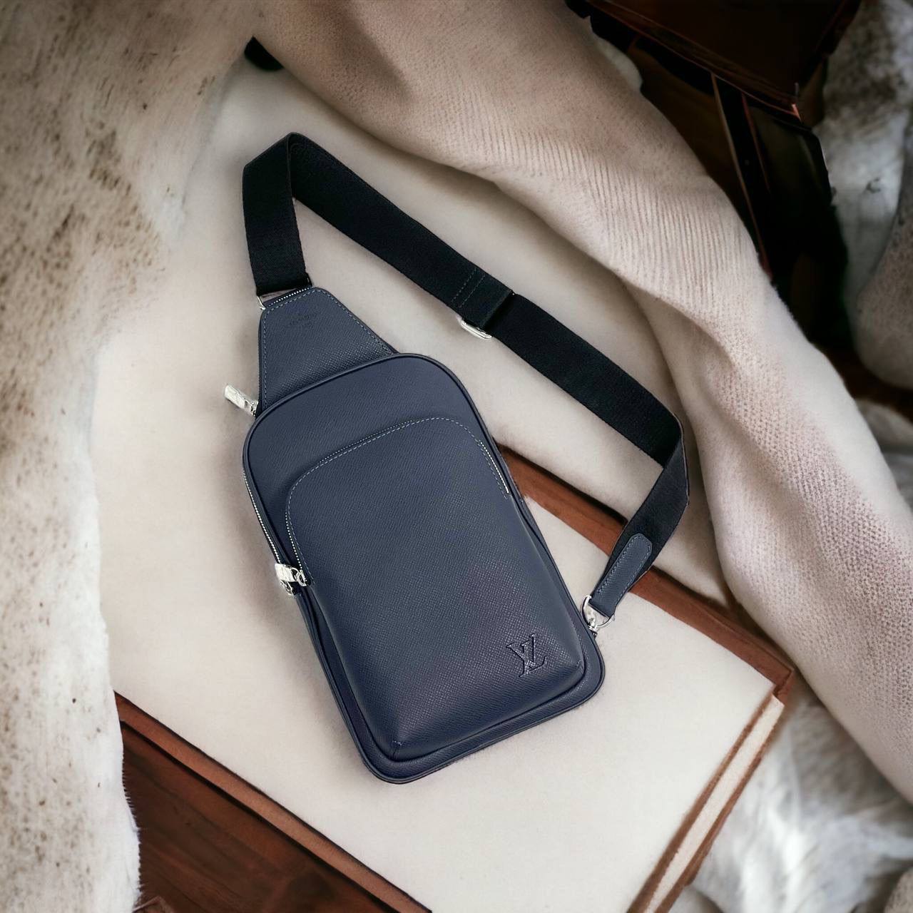 Сумка-слинг Louis Vuitton LUX-97998 выполнена в современном стиле. Темно-синий цвет и фактурная текстура придают сумке элегантность. Этот аксессуар станет отличным дополнением к повседневному образу, обеспечивая удобство и стиль.