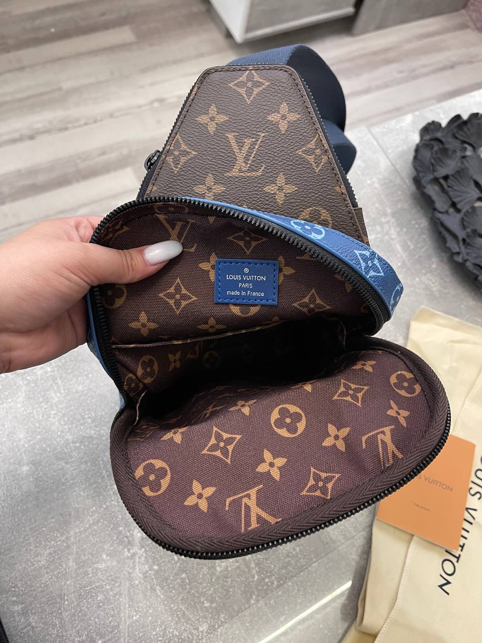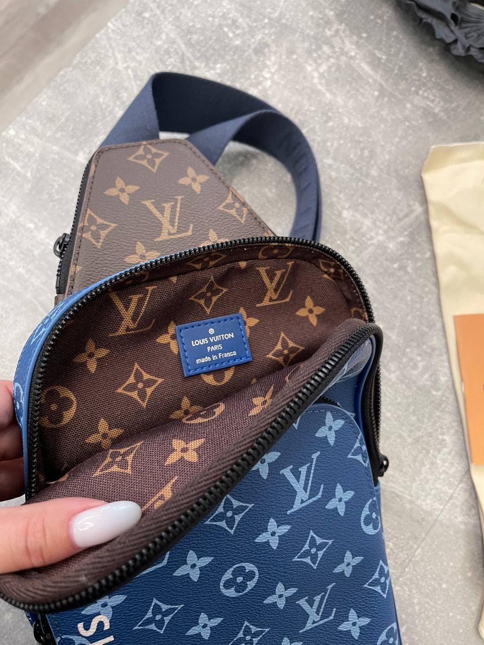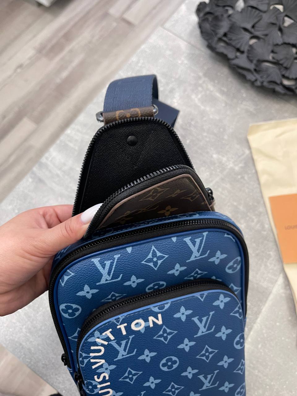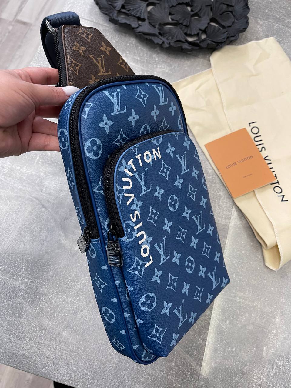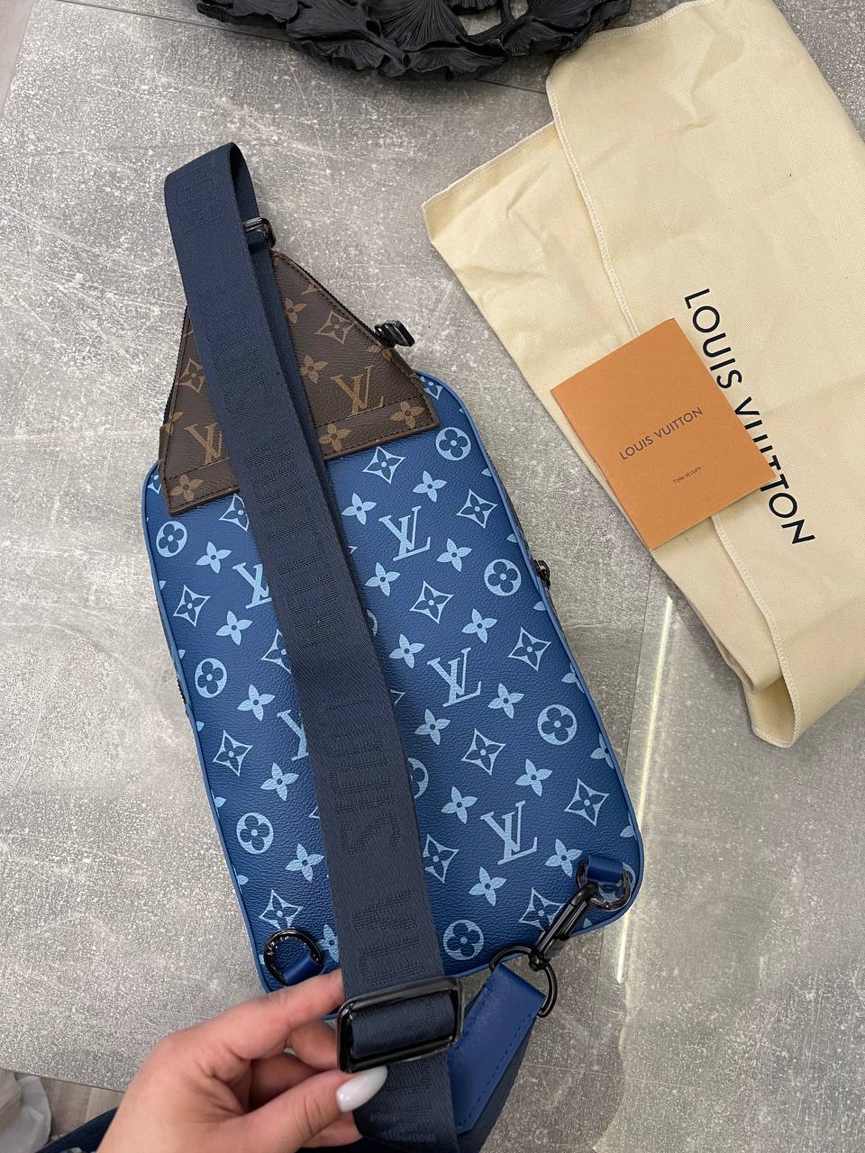 Сумка-слинг Louis Vuitton LUX-98617 - это стильный аксессуар в фирменном стиле бренда. Сумка выполнена в синем цвете с узнаваемым узором Monogram. Предназначена для повседневной носки и удобного хранения личных вещей.