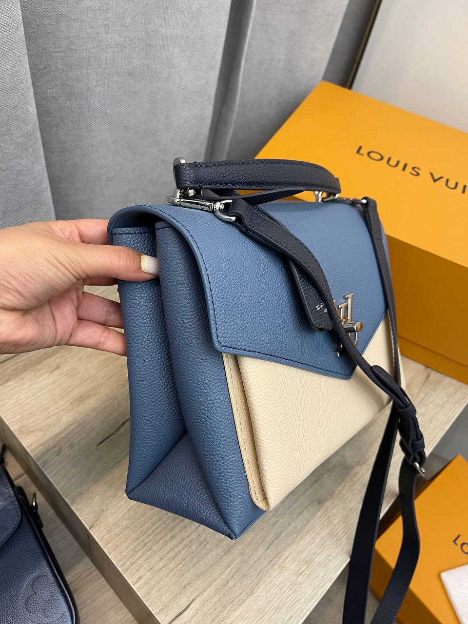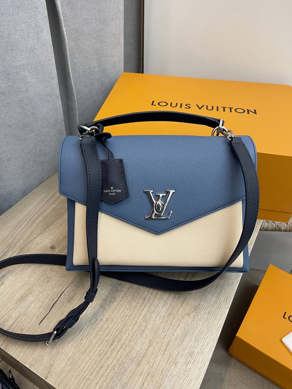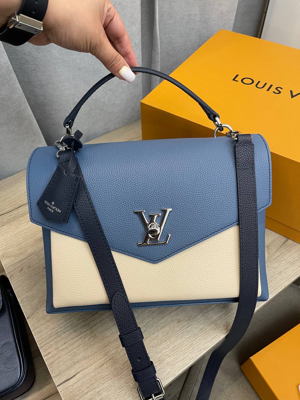 Сумка женская Louis Vuitton LUX-95216 — это стильный аксессуар, который сочетает в себе элегантность и функциональность. Сумка выполнена в сочетании синего и кремового цветов, имеет лаконичный дизайн с логотипом бренда. Идеально подойдет для повседневного использования, а также для создания завершенного образа.