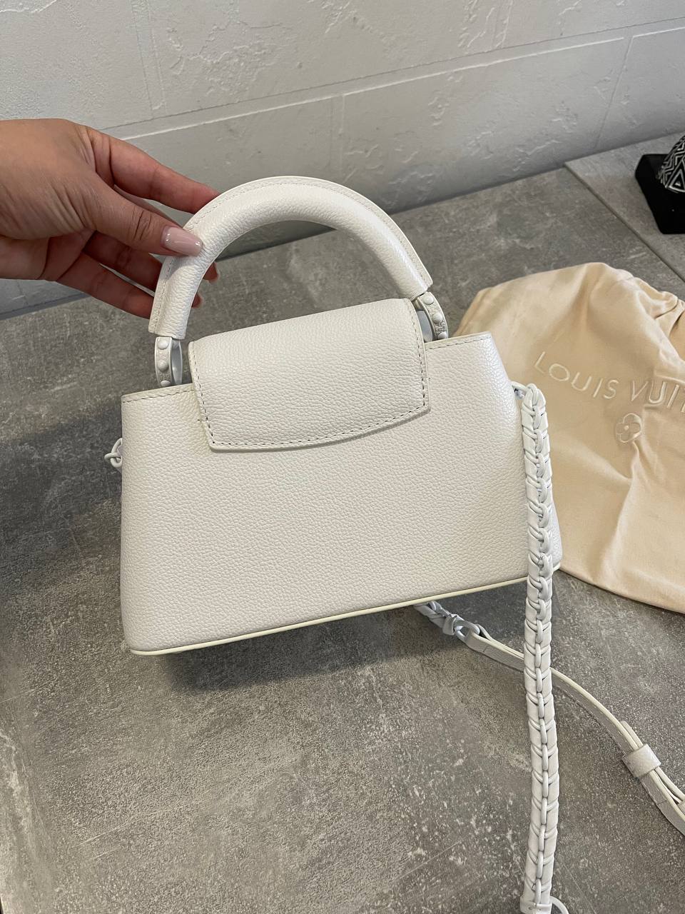 Сумка женская 23см Louis Vuitton LUX-110961 - элегантный аксессуар, выполненный в классическом стиле. Белый цвет и текстура создают изысканный внешний вид, подчеркивая премиальное качество изделия. Данная сумка идеально подойдет для повседневного использования и станет ярким акцентом вашего образа.