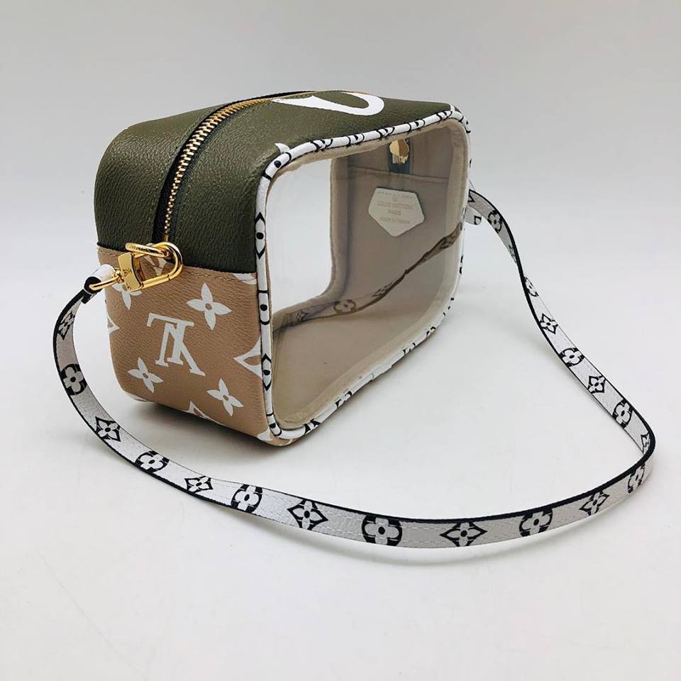 Louis Vuitton сумка женская LUX-11733 представляет собой стильный аксессуар, сочетающий в себе классический дизайн бренда и современные тренды. Эта модель выполнена в формате клатча или небольшой сумки для косметики, идеально подходит для хранения самых необходимых вещей. Дизайн сумки отличается оригинальным сочетанием материалов, включая прозрачные вставки, которые придают ей легкость и делают содержимое видимым.