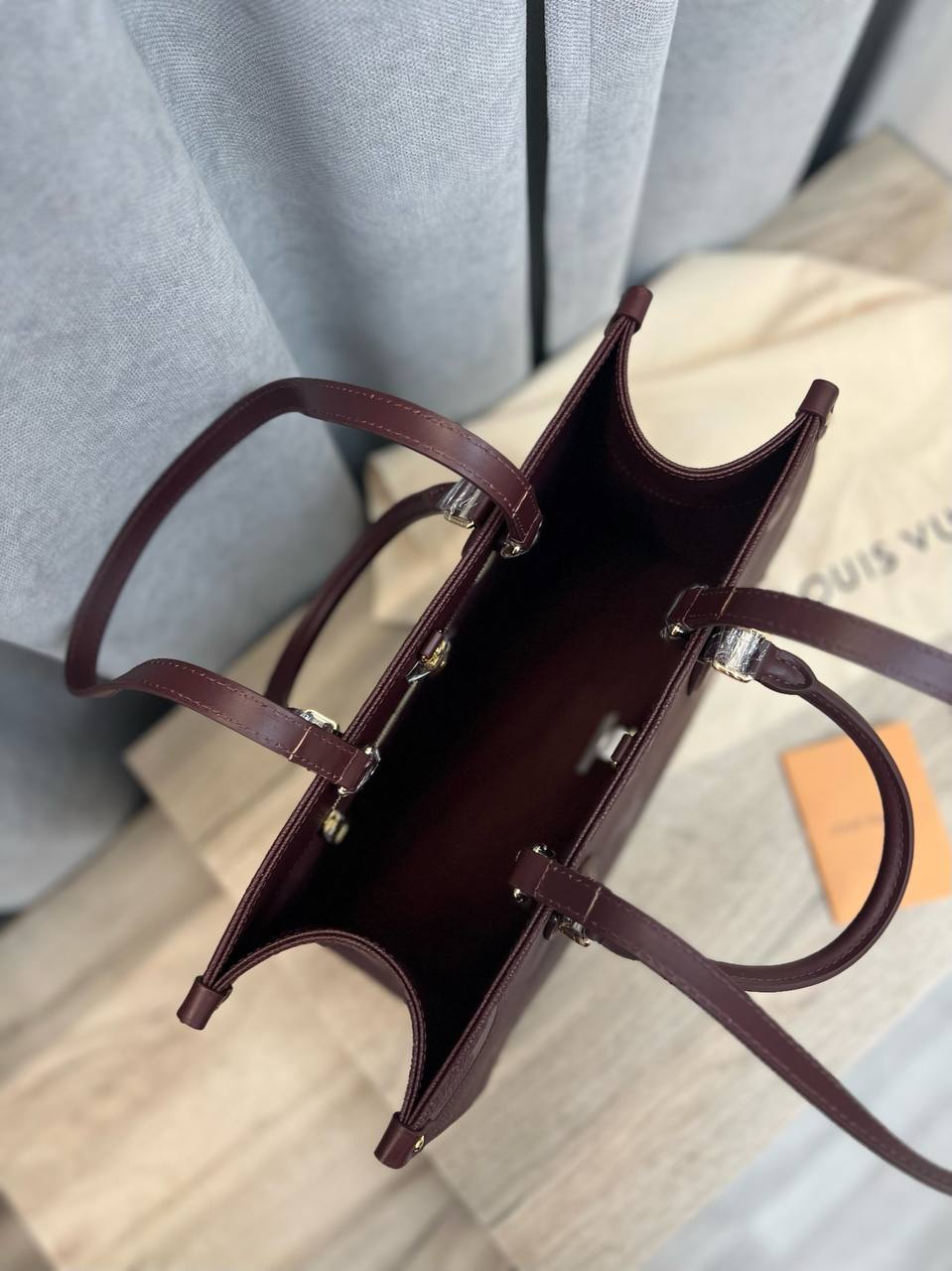 Сумка женская 34 см Louis Vuitton LUX-97457 — это элегантная сумка от известного бренда, выполненная в бордовом цвете. Она имеет прямоугольную форму и декорирована тисненым узором с логотипом бренда. Сумка подойдет для повседневного использования и подчеркнет ваш стиль.