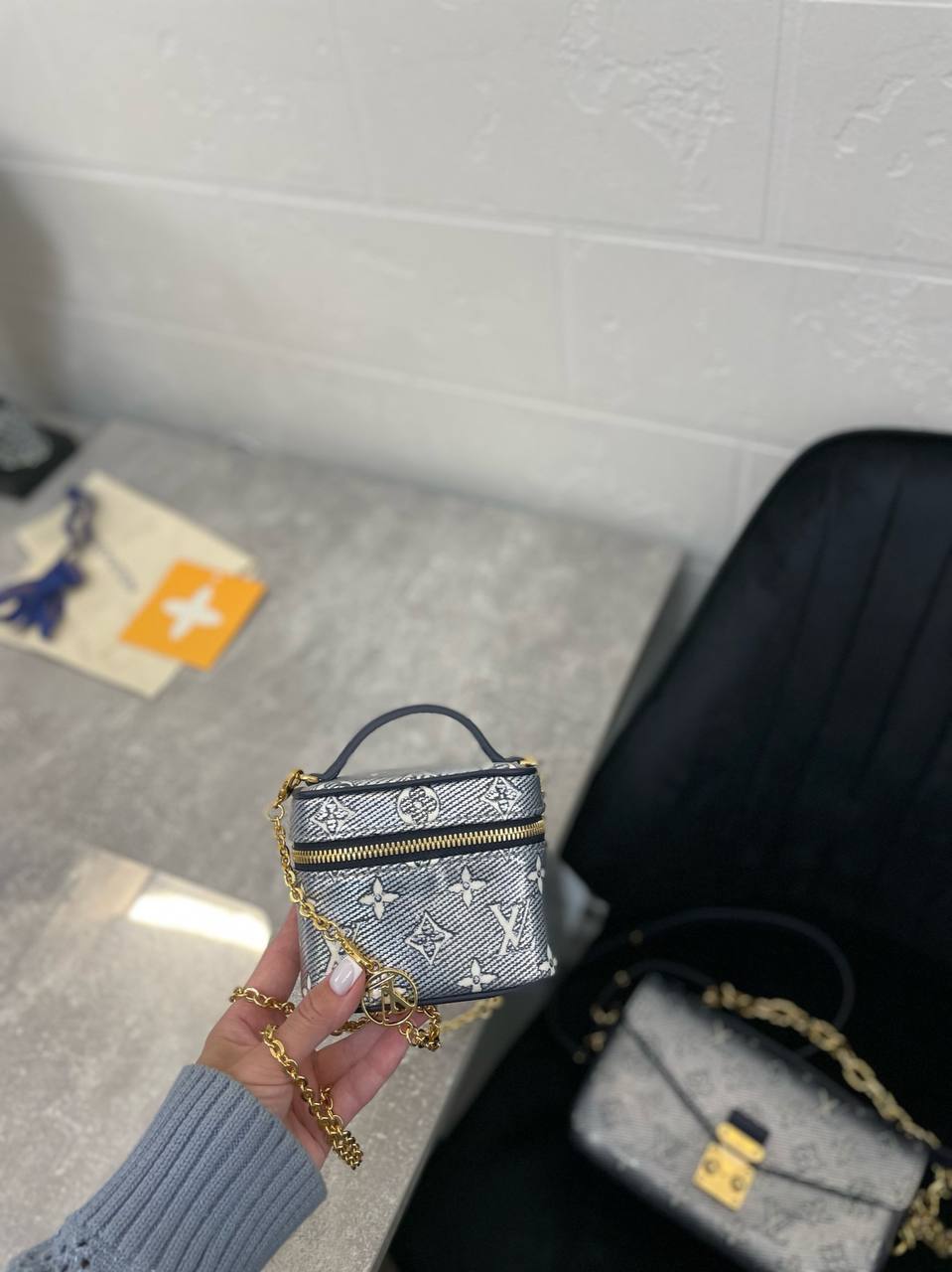 Сумка женская Louis Vuitton LUX-97286 - это элегантный аксессуар от известного бренда. Компактная сумочка выполнена в классическом стиле, сочетает в себе узнаваемые элементы дизайна и современный подход. Серебристо-серый цвет с фирменным узором придает изделию изысканный вид.