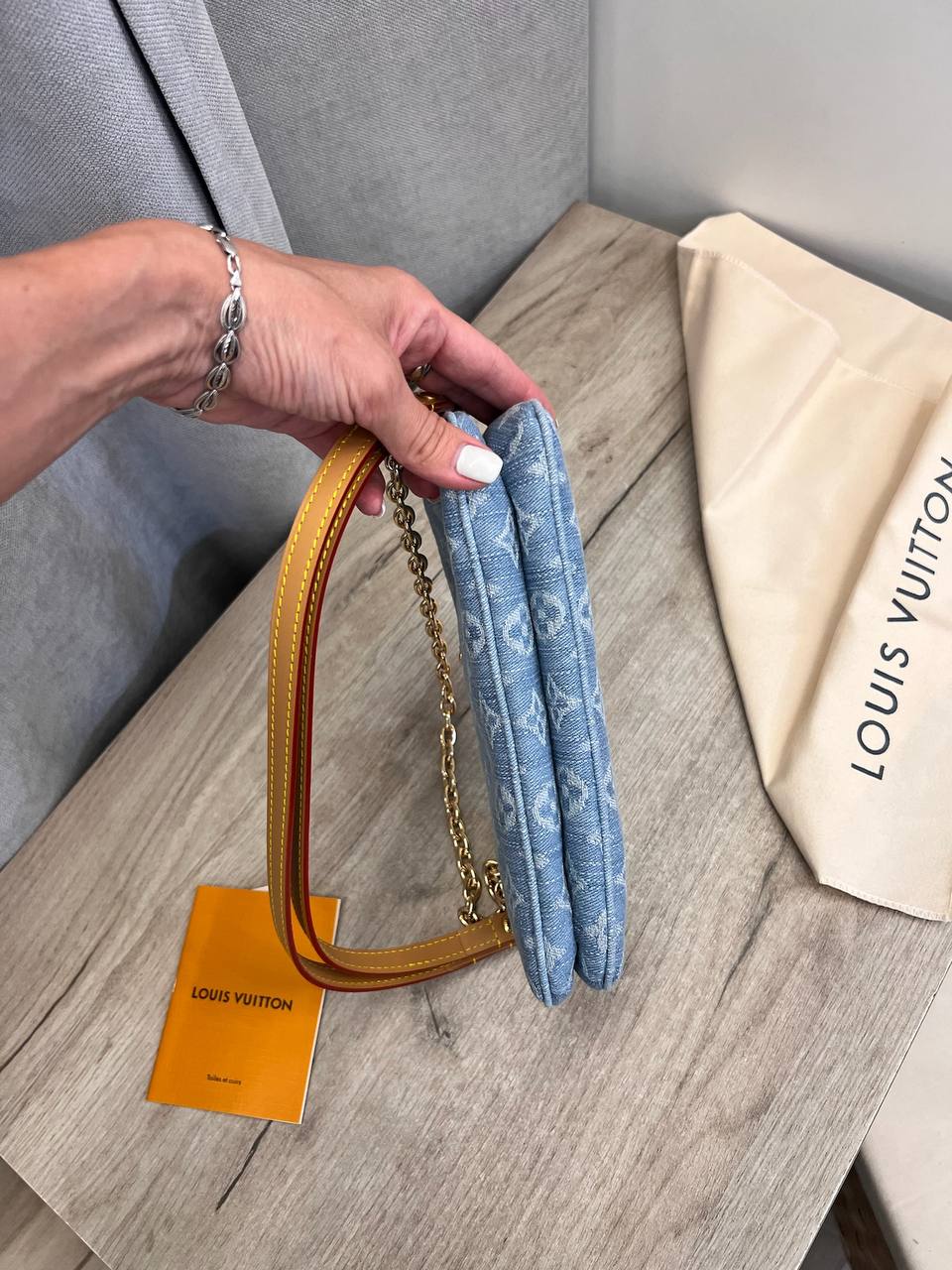 Женская сумка Louis Vuitton LUX-107968 представляет собой стильный аксессуар, выполненный в классическом стиле. Она выполнена в голубом цвете с текстурированным узором, характерным для бренда. Эта сумка идеально подходит для повседневного использования, дополняя любой образ.