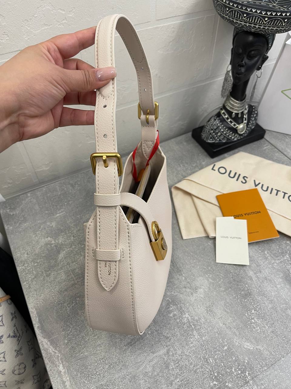 Сумка женская Louis Vuitton LUX-107978 - элегантный аксессуар от известного бренда. Сумка выполнена в нежном кремовом цвете, имеет гладкую текстуру и лаконичный дизайн. Идеально подходит для повседневного использования, дополняя любой образ.