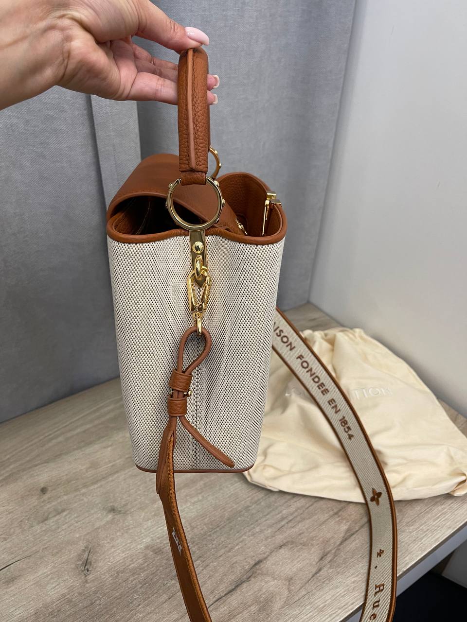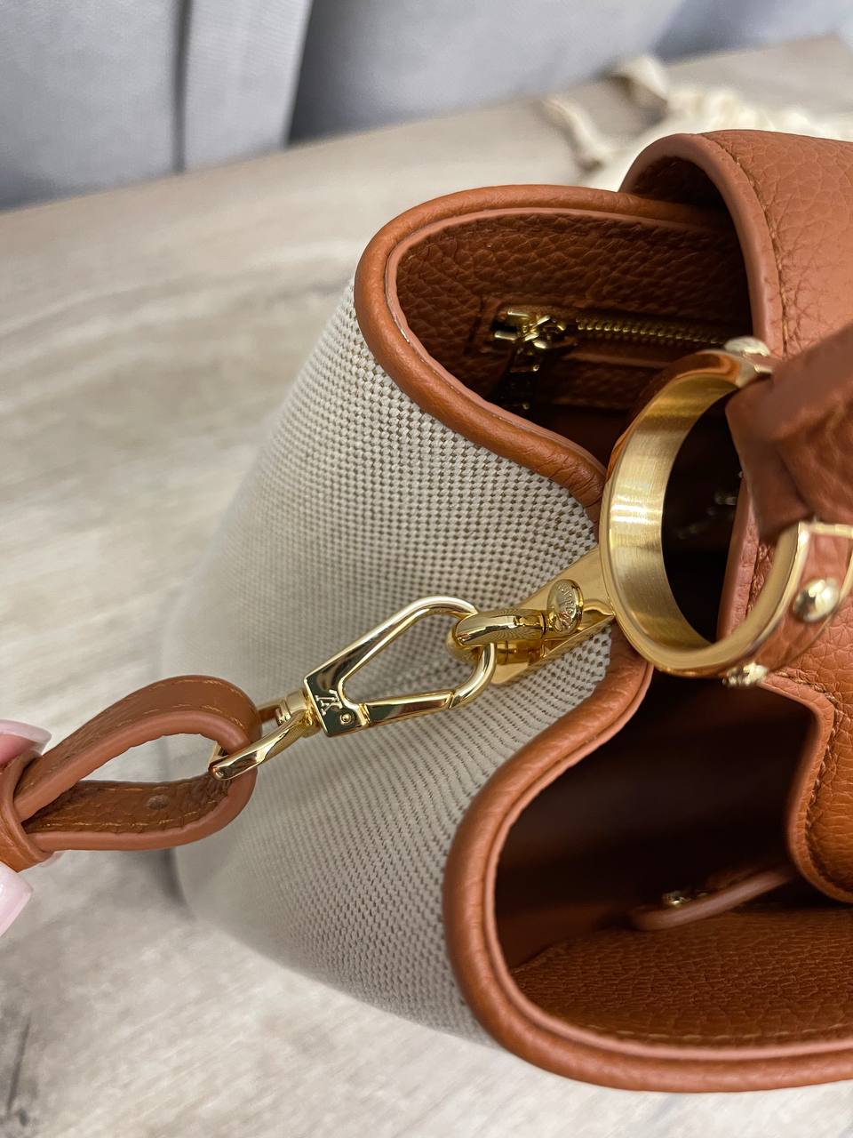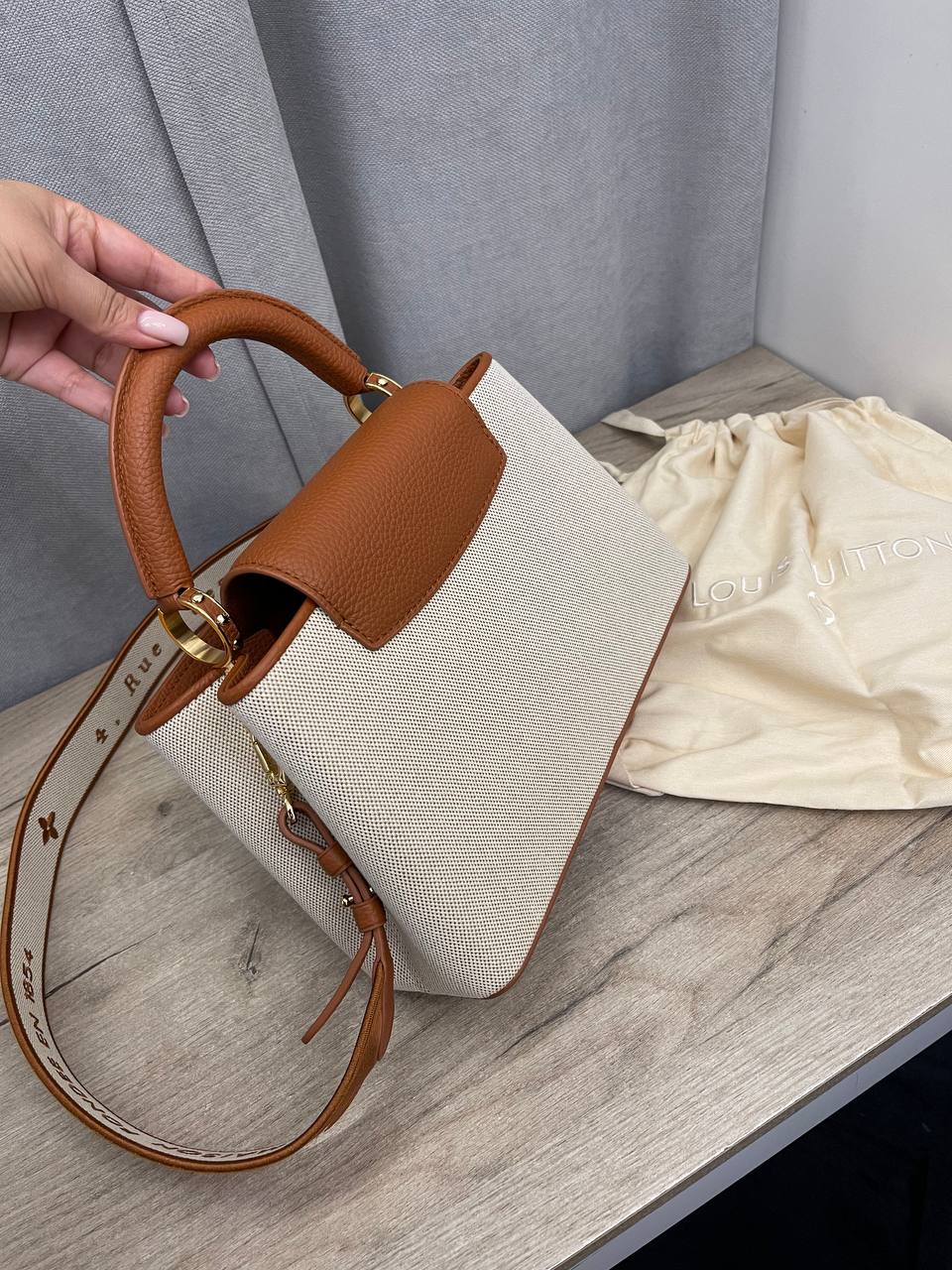 Сумка женская 27 см Louis Vuitton LUX-110521 представляет собой элегантную сумку с узнаваемым дизайном. Сочетание бежевого и коричневого цветов, а также текстуры создают классический, но современный вид. Сумка подходит для повседневного использования, а также для создания стильных образов.