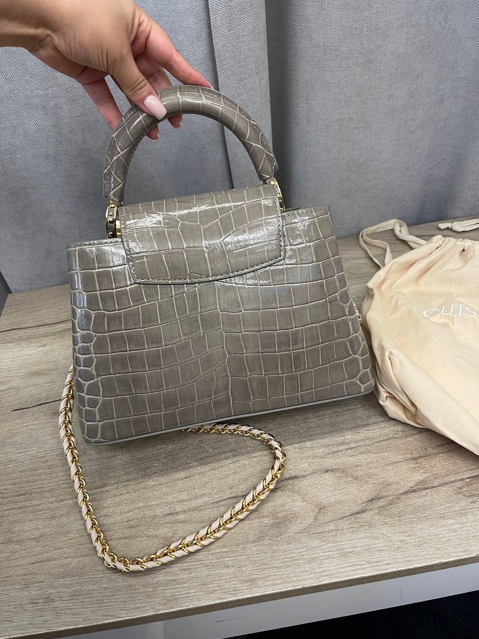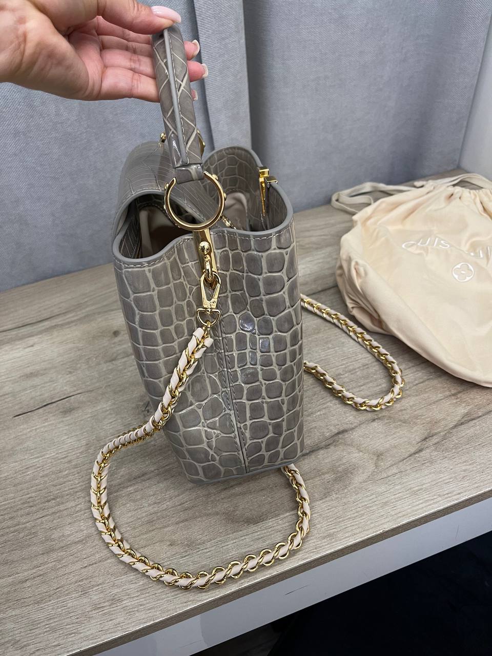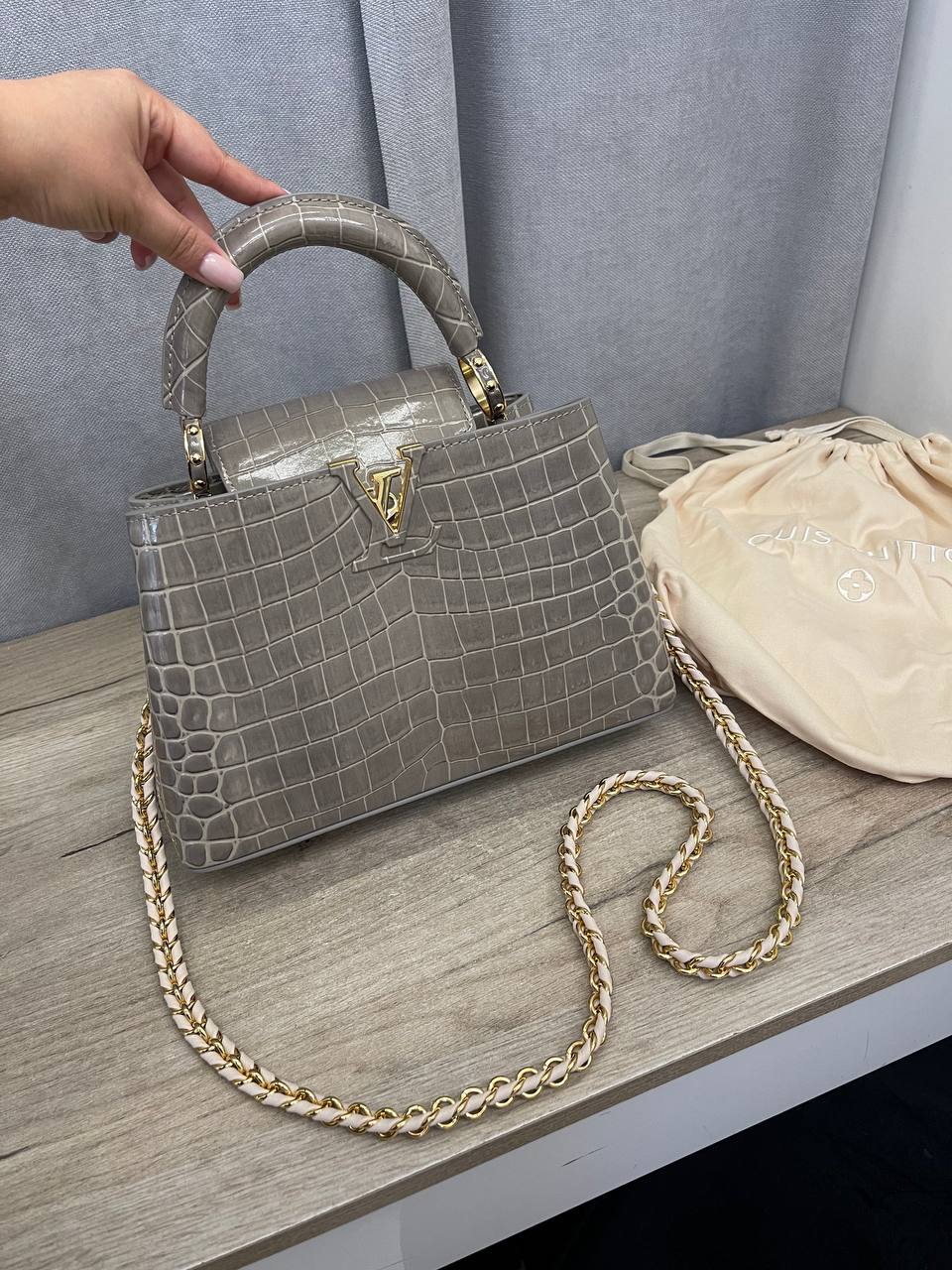 Женская сумка Louis Vuitton LUX-110523 27 см - это стильный аксессуар премиум-класса. Сумка выполнена в элегантном стиле, с тиснением под кожу крокодила и дополнена золотистой фурнитурой. Идеальный выбор для создания неповторимого образа и подчеркивания статуса.