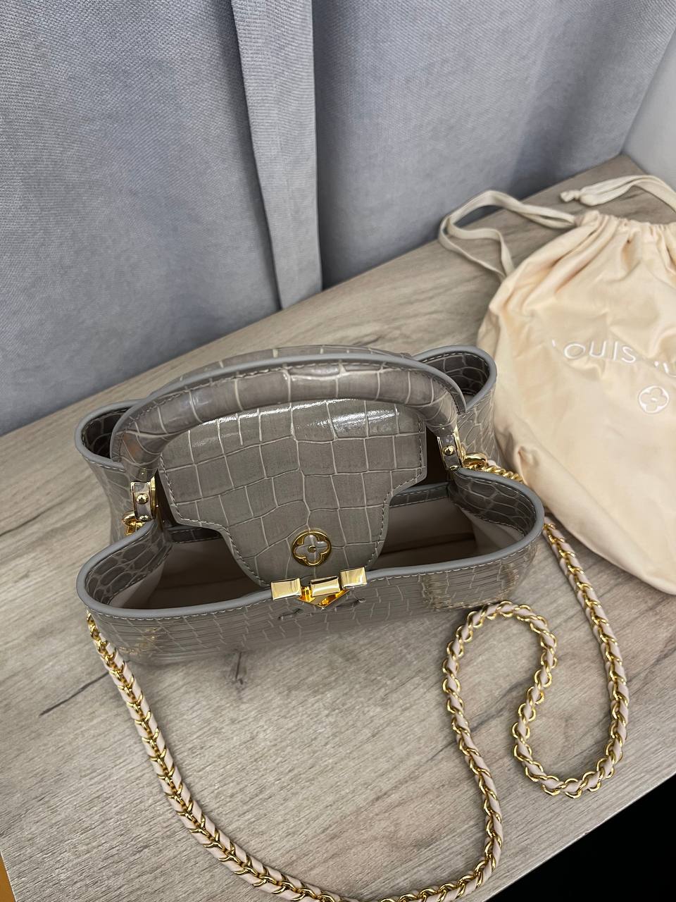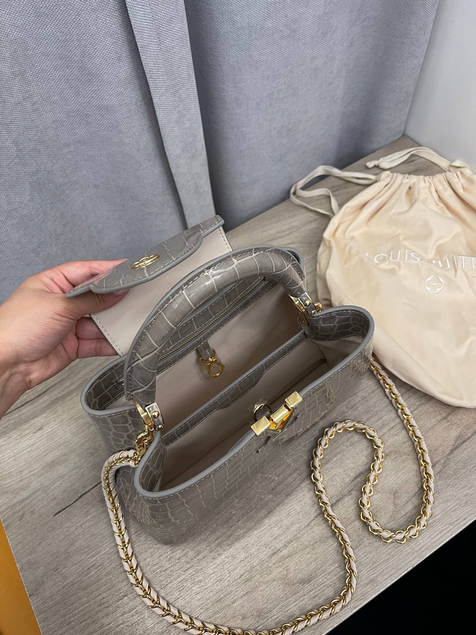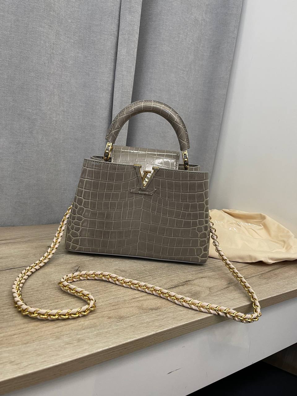 Женская сумка Louis Vuitton LUX-110523 27 см - это стильный аксессуар премиум-класса. Сумка выполнена в элегантном стиле, с тиснением под кожу крокодила и дополнена золотистой фурнитурой. Идеальный выбор для создания неповторимого образа и подчеркивания статуса.