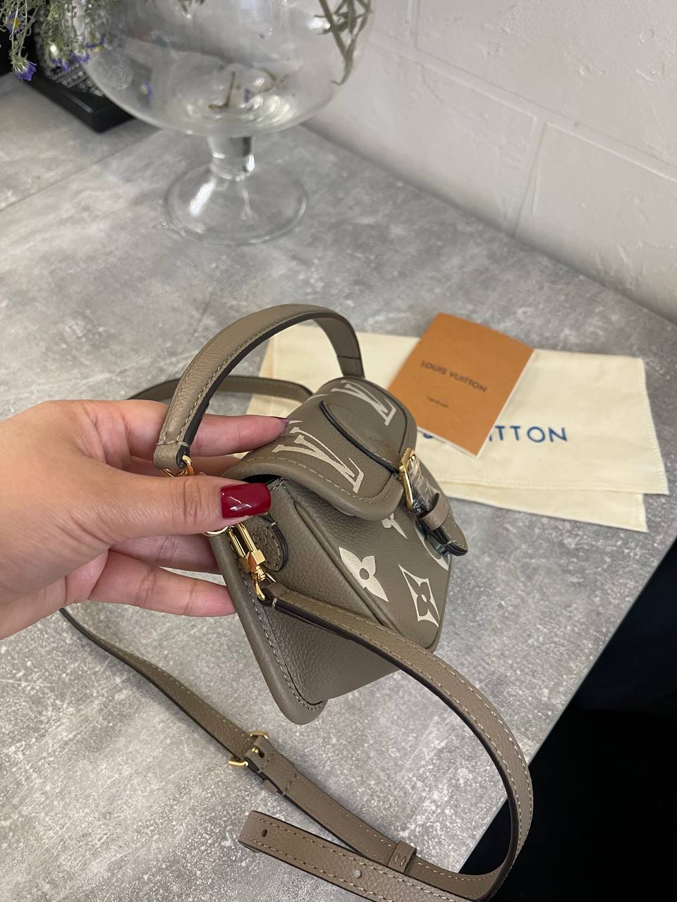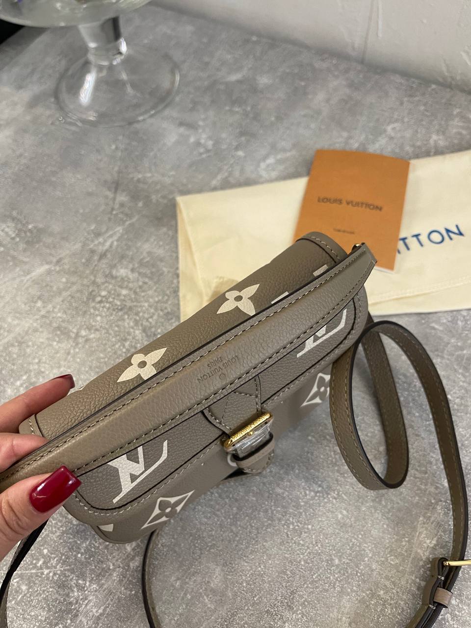 Сумка женская Louis Vuitton LUX-111322 - элегантный аксессуар в классическом стиле. Сумка выполнена в сером цвете с узнаваемым узором бренда, дополнена золотистой фурнитурой. Идеально подходит для повседневного использования и станет отличным дополнением к любому образу.