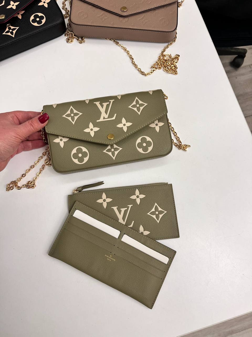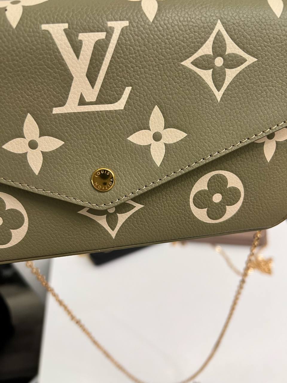 Сумка женская Louis Vuitton LUX-115086 — это элегантный аксессуар для современной женщины. Дизайн сумки сочетает в себе классический стиль и узнаваемый принт. Зеленый цвет с белыми узорами и золотистая фурнитура придают ей изысканный вид.