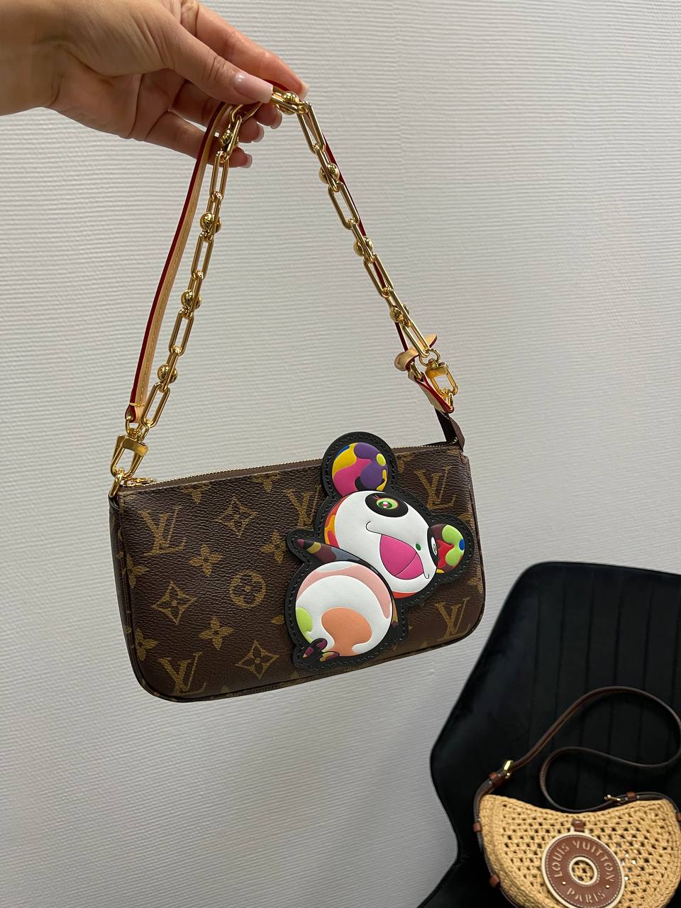 Женская сумка Louis Vuitton LUX-116863 — это стильный аксессуар, сочетающий в себе классику и современность. Сумка выполнена в темно-коричневом цвете с характерным для бренда монограммным принтом. Украшена яркой аппликацией в виде забавного персонажа.