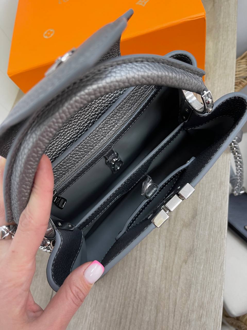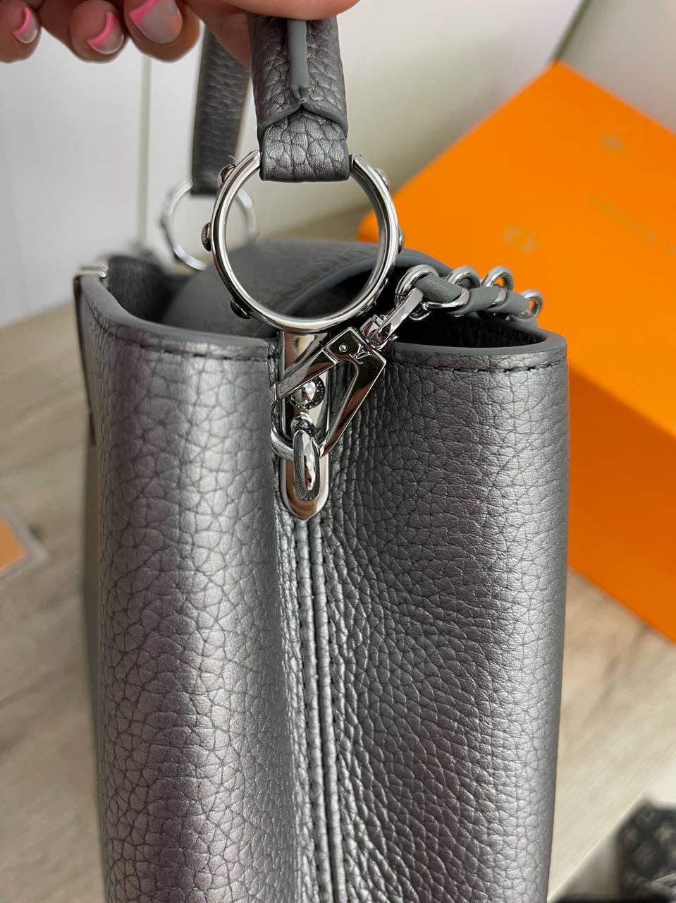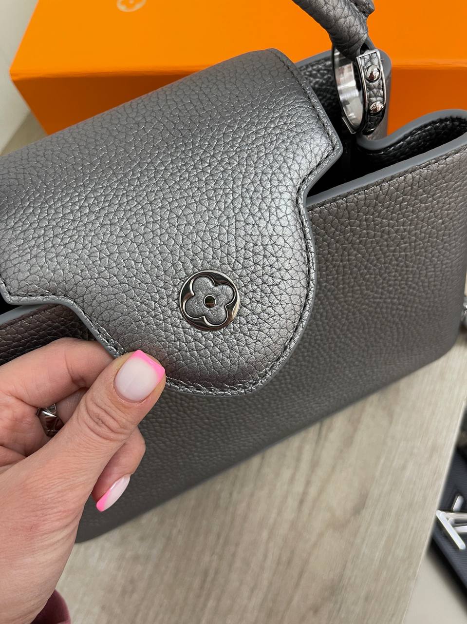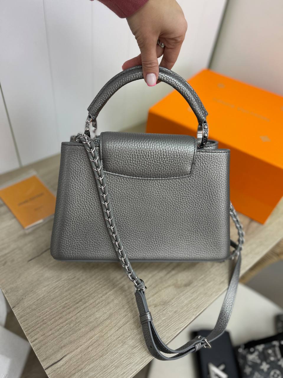 Женская сумка CAPUCINES 25 от Louis Vuitton (артикул LUX-83374) — воплощение роскоши и элегантности. Сумка выполнена в современном стиле, имеет серебристый цвет с зернистой текстурой. Этот аксессуар станет идеальным дополнением к любому образу.