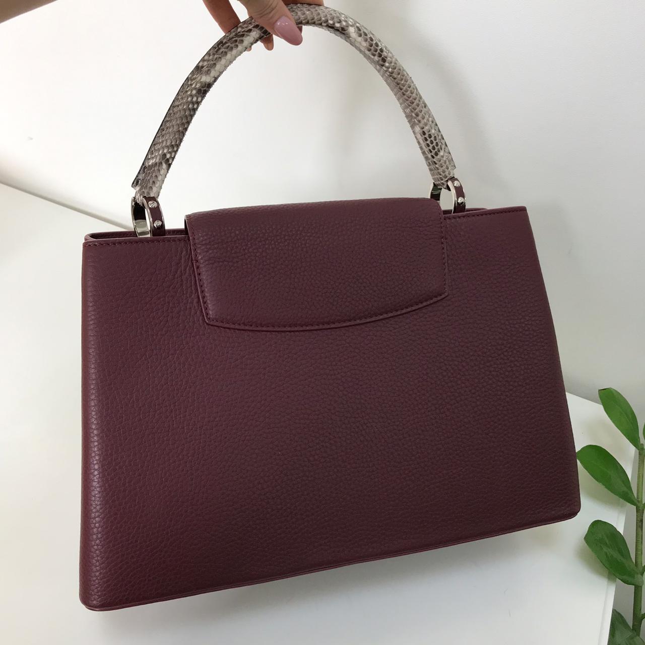 Сумка женская CAPUCINES Louis Vuitton LUX-10427 представляет собой элегантный аксессуар, выполненный в классическом стиле. Бордовый цвет и четкие линии придают ей изысканный вид. Эта сумка идеально подойдет для создания утонченных деловых и вечерних образов.