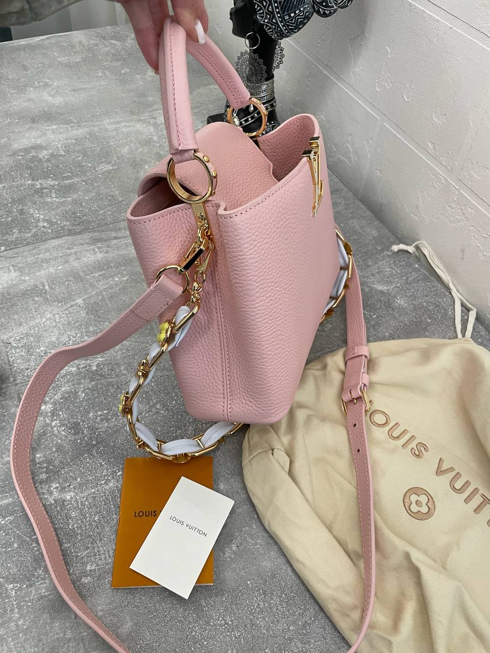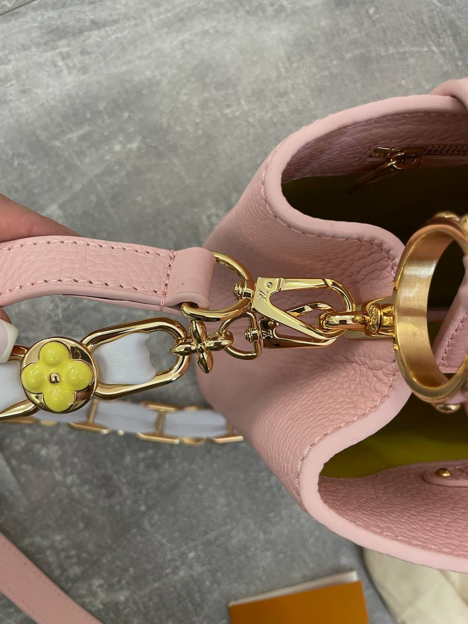Сумка женская Capucines Louis Vuitton LUX-107219 - это элегантный аксессуар, выполненный в нежно-розовом цвете. Она сочетает в себе классический стиль и современный дизайн. Эта сумка идеально подойдет для создания как повседневных, так и вечерних образов.