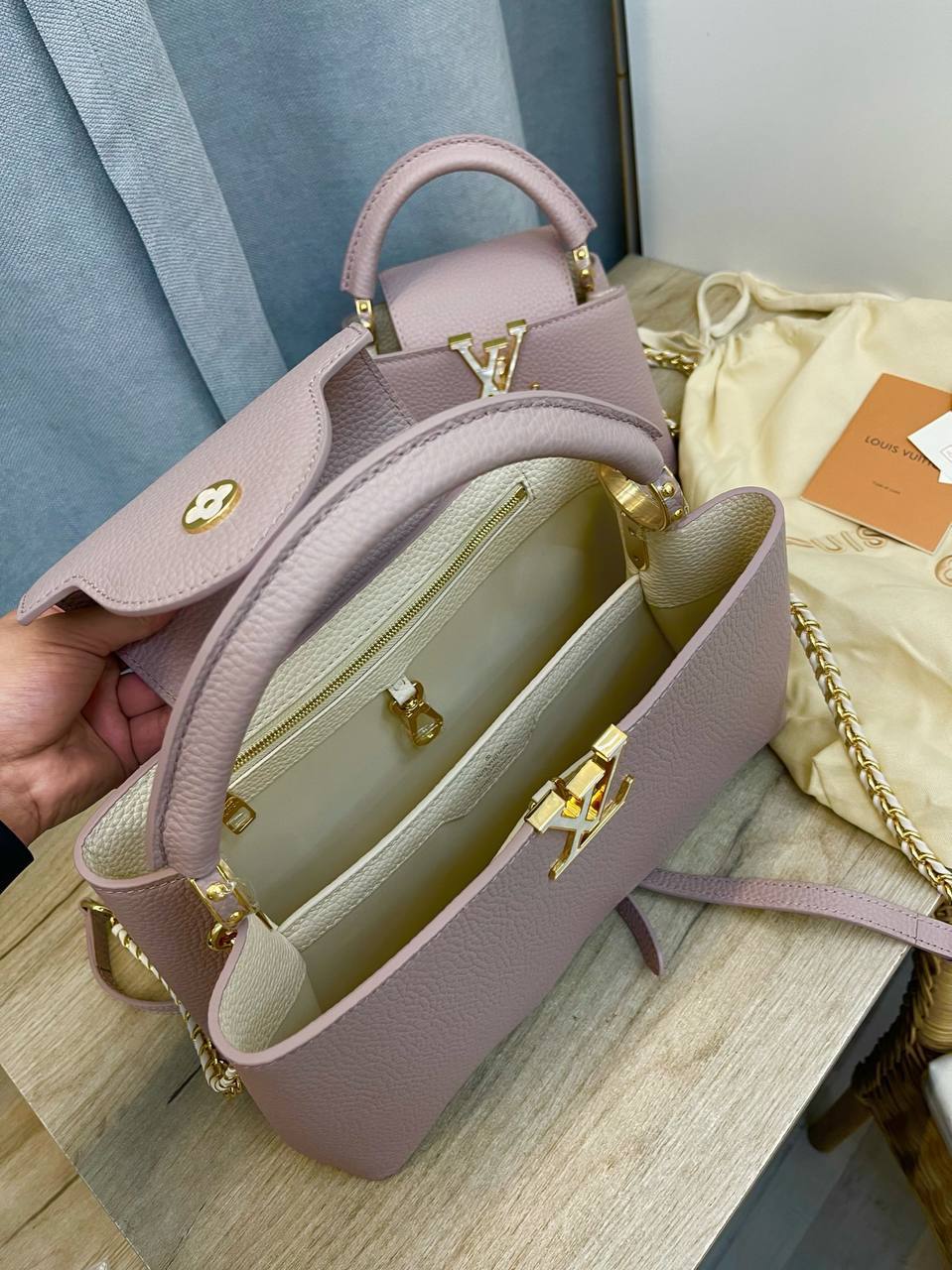 Женская сумка Capucines от Louis Vuitton – это элегантный аксессуар, сочетающий в себе классический дизайн и современные детали. Идеально подойдет для создания изысканного образа.