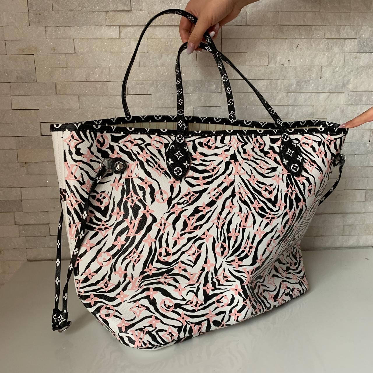 Сумка женская NEVERFULL Louis Vuitton LUX-11734 представляет собой элегантный и вместительный аксессуар, выполненный в стиле бренда. Ее яркий принт зебры с розовыми элементами LV монограммы придает ей эксклюзивный вид, делая ее идеальным дополнением к любому образу. Стиль сумки универсален, подходит как для повседневного использования, так и для особых случаев.