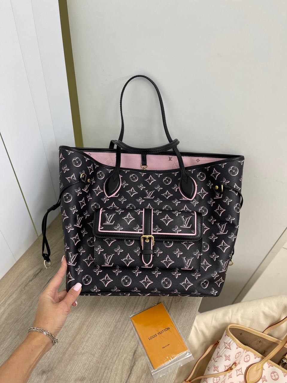 Женская сумка NEVERFULL Louis Vuitton LUX-74869 представляет собой стильный аксессуар, который подчеркнет элегантность и статус своей обладательницы. Сумка выполнена в черном цвете с розовыми деталями и узорами, что делает ее яркой и запоминающейся. NEVERFULL идеально подходит для повседневного использования, дополняя любой образ.