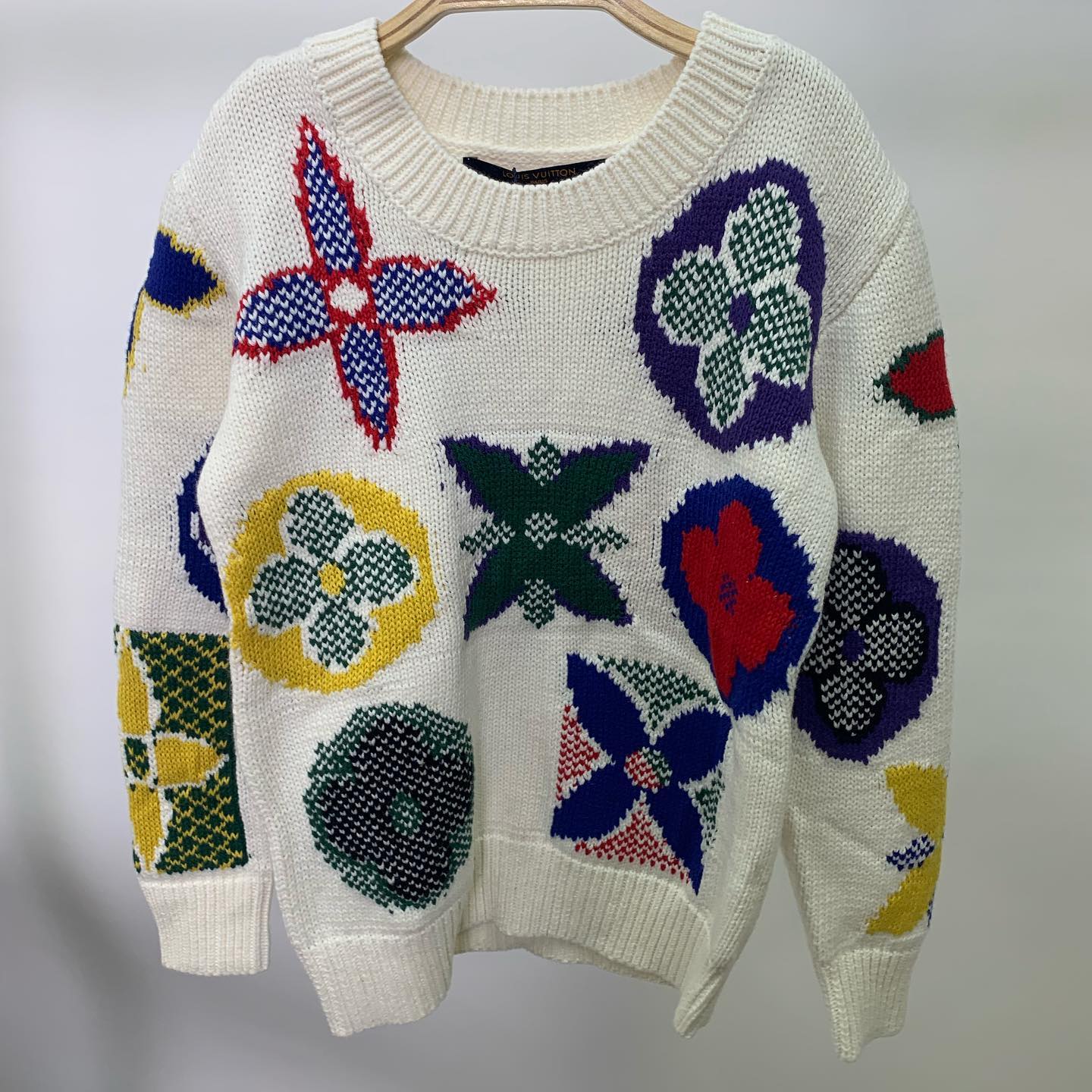 Стильный свитер Louis Vuitton LUX-38770 – это воплощение утонченности и яркой индивидуальности. Белоснежная основа изделия дополнена оригинальным принтом в виде разноцветных мотивов, вдохновленных фирменными узорами бренда. Этот свитер идеально подходит для создания эффектных повседневных и вечерних образов, добавляя изысканности любому наряду.
