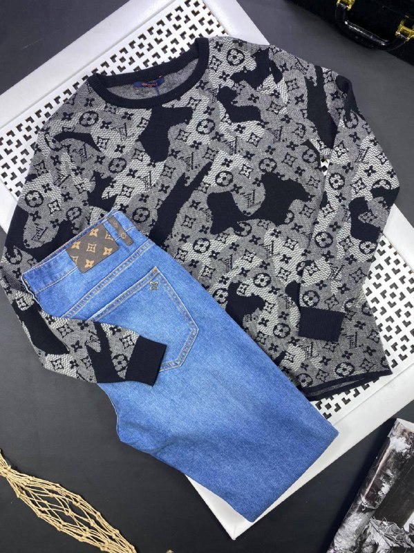 Стильный мужской свитер Louis Vuitton LUX-53523 выполнен в современном дизайне с узнаваемым принтом бренда, сочетающим монограмму LV с элементами камуфляжа. Этот свитер станет ярким акцентом в вашем образе, подчеркивая индивидуальность и изысканный вкус. Идеально подходит для создания эффектных повседневных и кэжуал-луков.