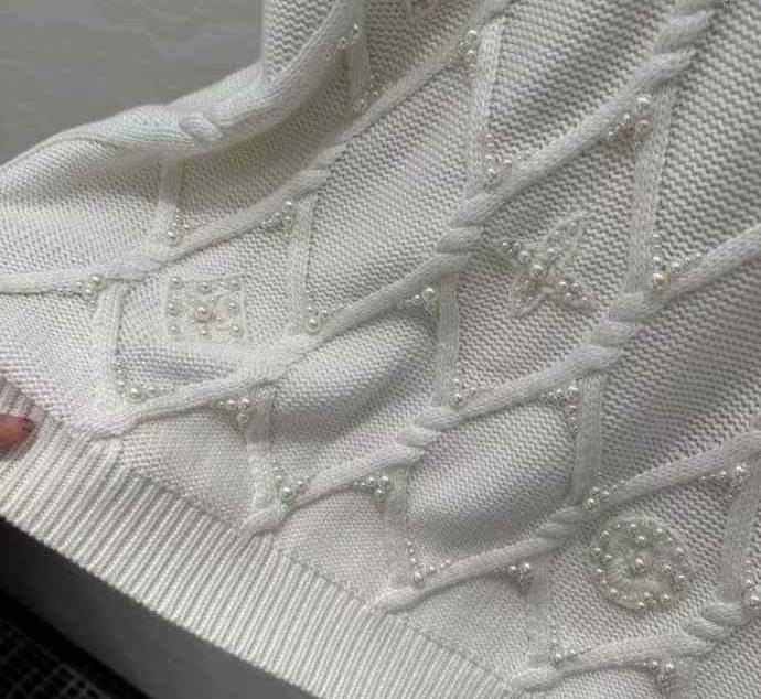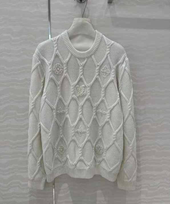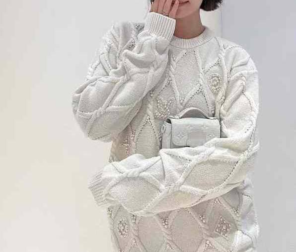 Свитер Louis Vuitton LUX-113090, представленный на изображении, — это воплощение изысканности и стиля. Белый свитер с круглым вырезом выполнен в уникальной технике вязки, украшен жемчужными элементами. Этот свитер — идеальный выбор для создания элегантных и запоминающихся образов.