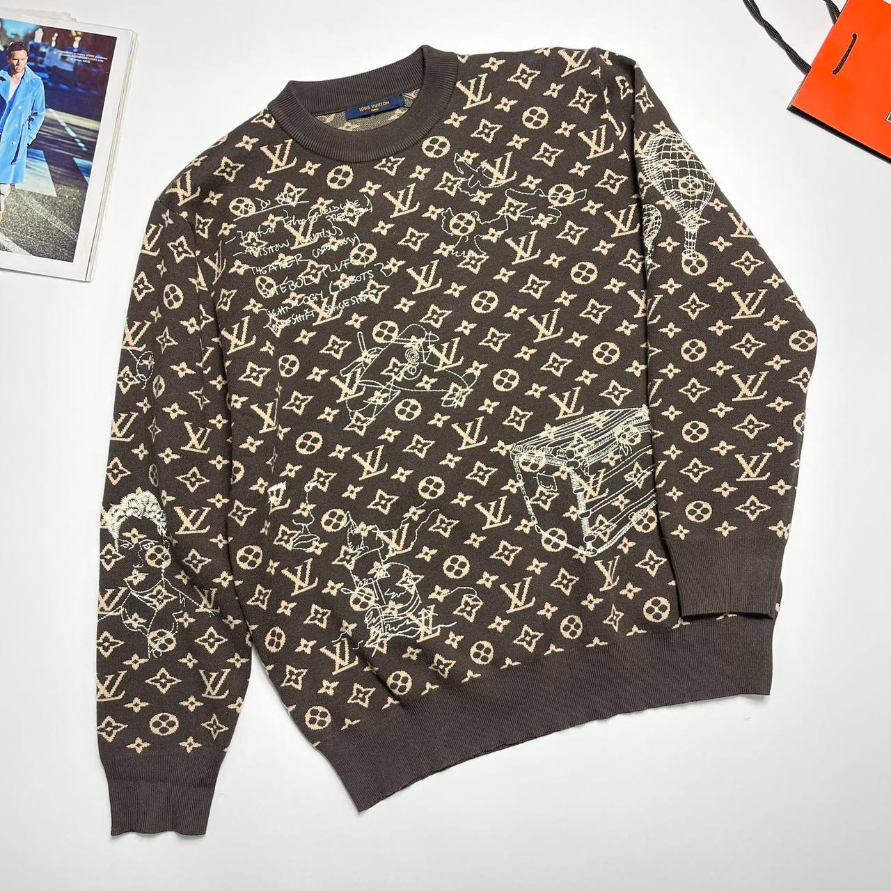 Свитер мужской Louis Vuitton LUX-99225 – это стильный предмет гардероба от известного бренда. Свитер выполнен в классическом стиле, украшен фирменным узором бренда и уникальными графическими элементами. Тёмно-коричневый цвет придает изделию элегантность и универсальность.