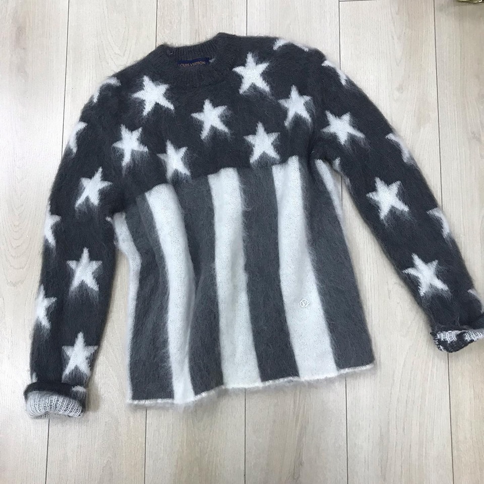 Свитер женский Louis Vuitton LUX-22034 представляет собой стильный предмет гардероба, выполненный в оригинальном дизайне. Сочетание графичного принта в виде звезд и полос, напоминающих американский флаг, придает свитеру модный и узнаваемый вид. Модель идеально подойдет для создания ярких и запоминающихся образов.