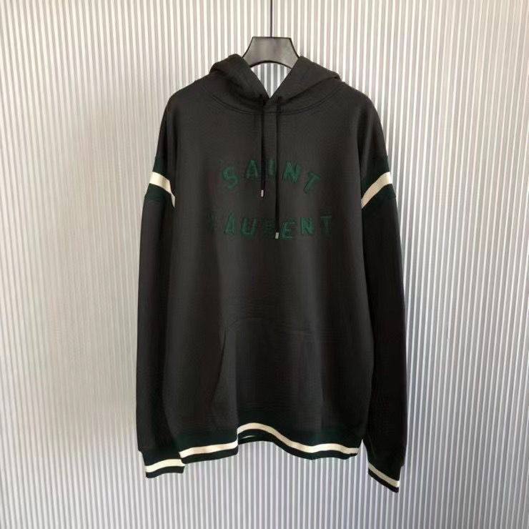 Толстовка Saint Laurent LUX-77589 представляет собой стильную и комфортную вещь для повседневного гардероба. Толстовка выполнена в классическом стиле с капюшоном и длинными рукавами. Темный цвет изделия в сочетании с контрастными деталями создает элегантный и современный образ.