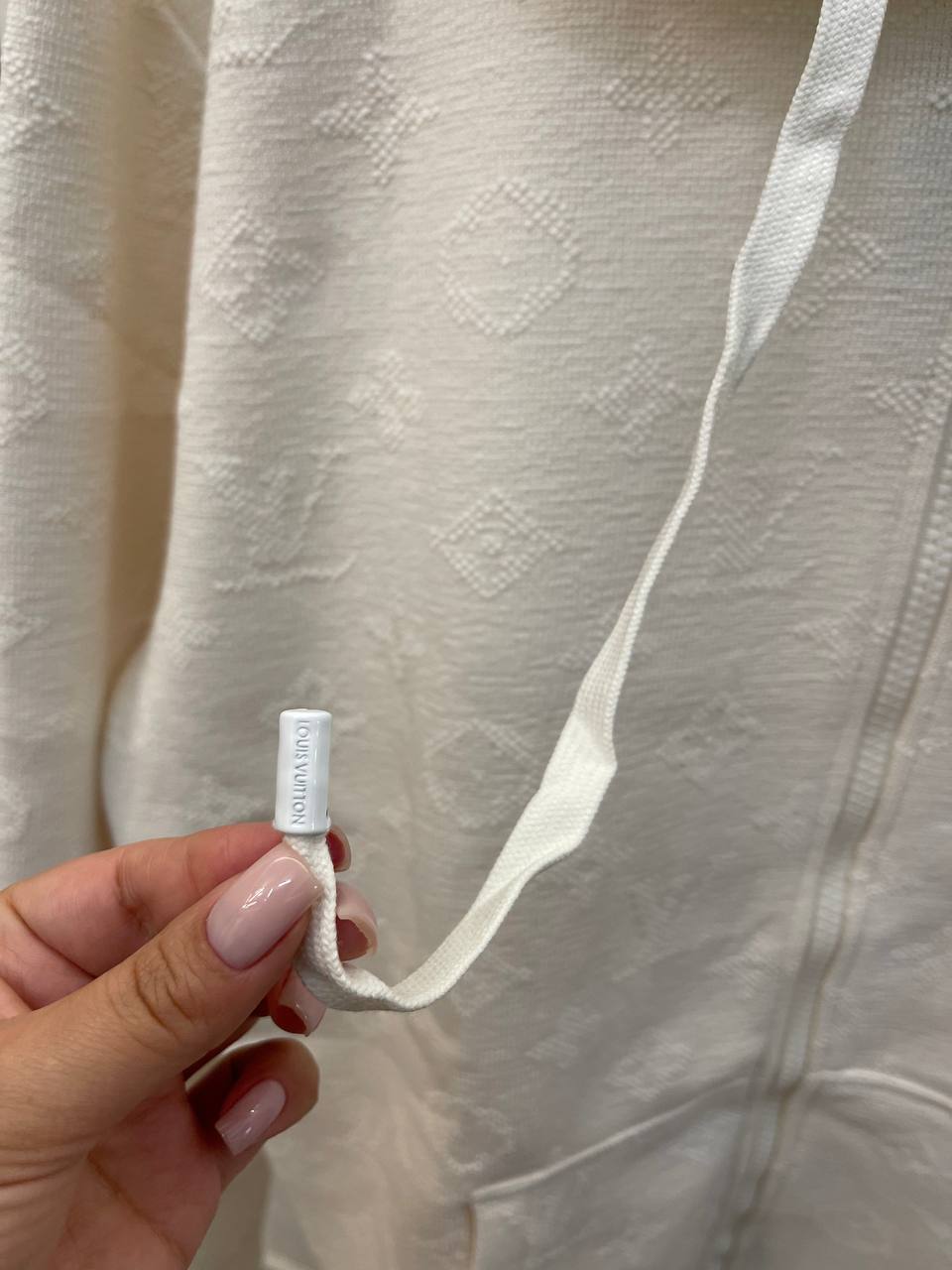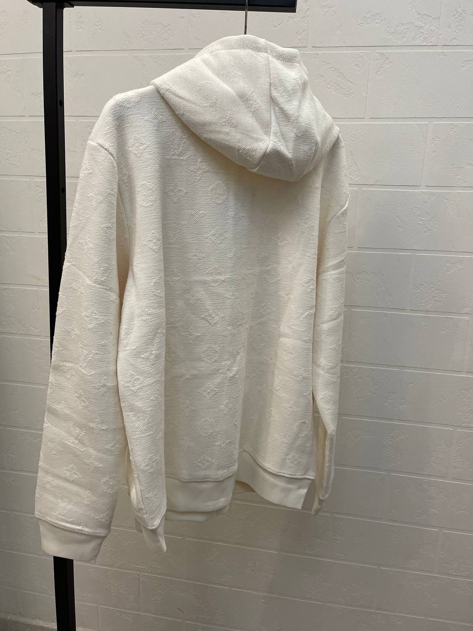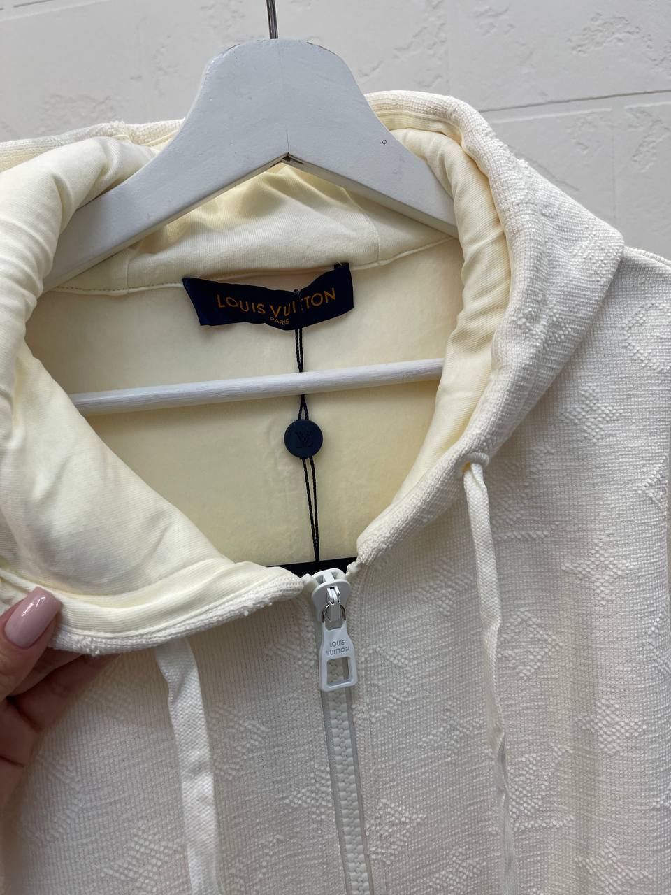Толстовка Louis Vuitton LUX-110065 — это стильная и удобная толстовка в классическом стиле. Она выполнена в кремовом цвете с текстурированным узором, имеет капюшон и застежку-молнию. Идеально подходит для создания повседневных образов, обеспечивая комфорт и тепло в прохладную погоду.