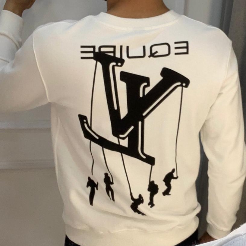 Данная толстовка женская Louis Vuitton LUX-39034 представляет собой стильный элемент гардероба, выполненный в современном дизайне. На белом фоне расположен крупный черный принт с логотипом бренда, стилизованным под марионетку, где фигуры людей управляются нитями. Этот оригинальный дизайн подчеркивает эксклюзивность и узнаваемость бренда. Толстовка идеально подойдет для создания эффектных повседневных образов.