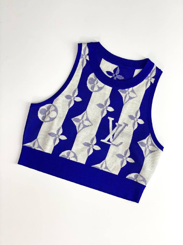 Эффектный женский топ Louis Vuitton LUX-50853 в сине-серебристой гамме с фирменным принтом Monogram – идеальное дополнение к образу для ценительниц роскоши и стиля. Этот укороченный топ без рукавов, выполненный из качественного материала, подчеркнет вашу индивидуальность. Он прекрасно подойдет для создания как повседневных, так и более нарядных комплектов, добавив им нотку элегантности.