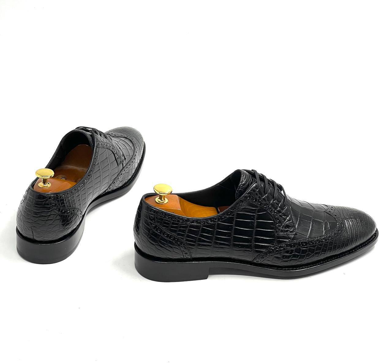 Туфли из натуральной кожи крокодила Louis Vuitton LUX-115235 — это воплощение элегантности и роскоши. Классический стиль дерби, дополненный фактурой крокодиловой кожи, создает изысканный и запоминающийся образ. Черный цвет делает их универсальным вариантом для различных событий.