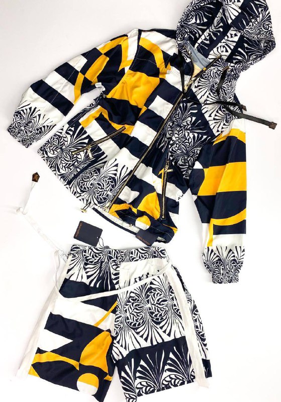 Стильная ветровка Louis Vuitton LUX-50529 представляет собой идеальное сочетание комфорта и эксклюзивного дизайна. Её яркий, узнаваемый принт в черно-бело-желтых тонах делает её заметным элементом любого образа. Удобный капюшон и застежка-молния обеспечивают практичность, а легкий материал делает эту ветровку незаменимой для активного отдыха или повседневного ношения.
