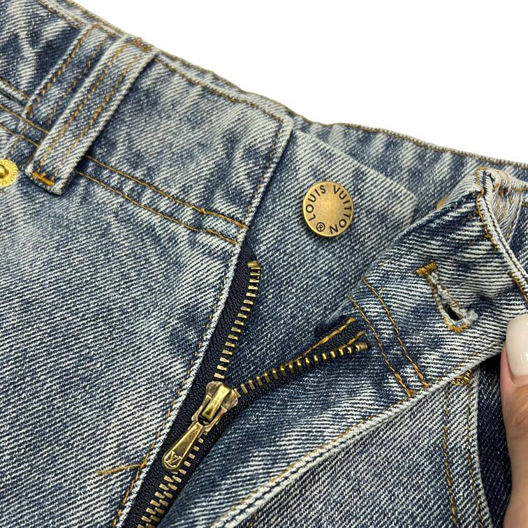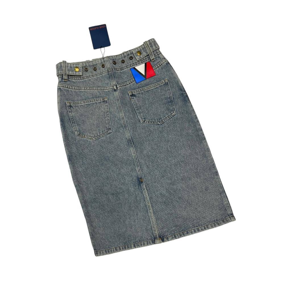 Юбка Louis Vuitton LUX-95915 — это стильная юбка из денима в классическом стиле. Она выполнена в светло-синем цвете с потертостями и эффектом выцветания. Юбка имеет прямой крой с разрезом спереди.