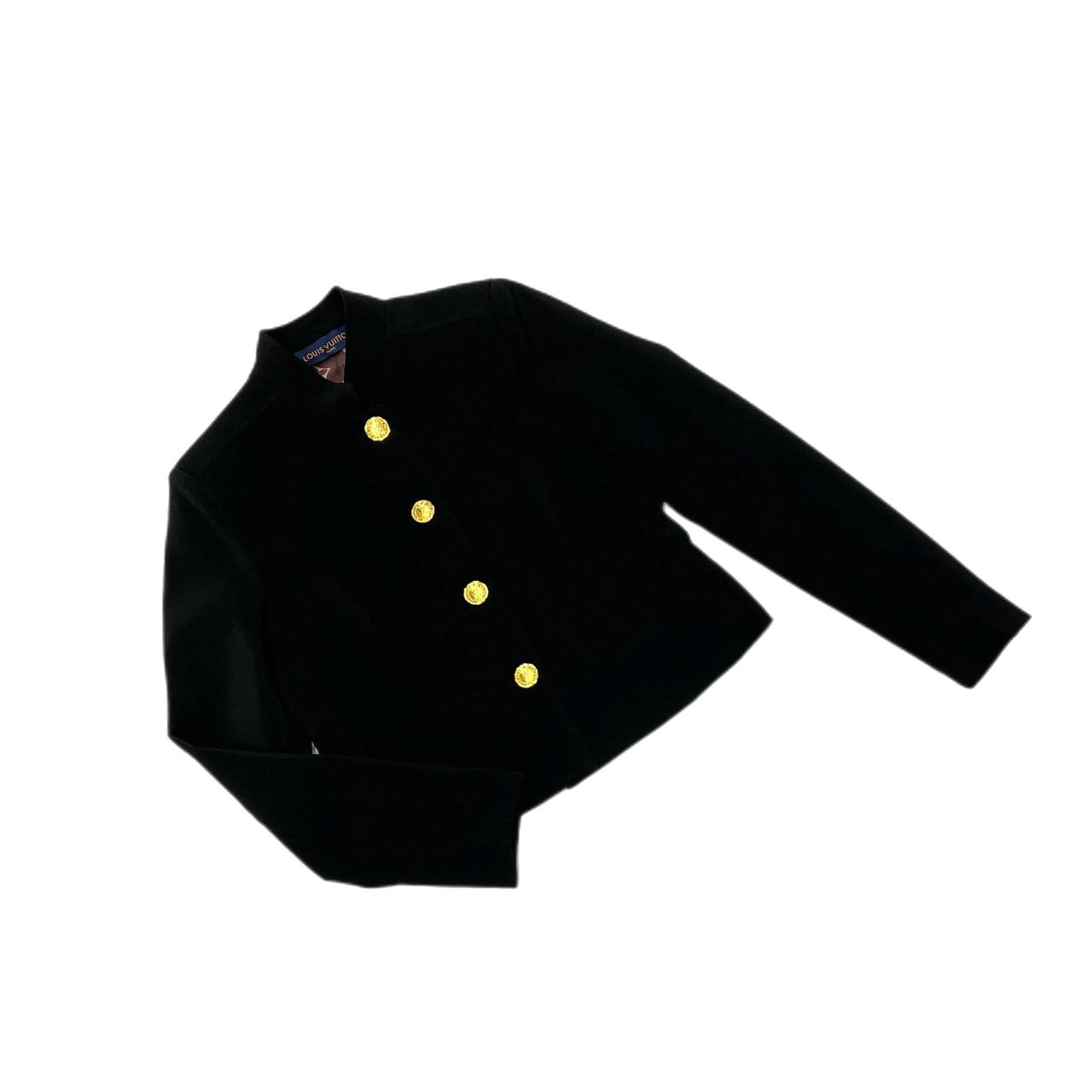 Жакет Louis Vuitton LUX-113887 — это элегантный предмет гардероба, выполненный в классическом стиле. Чёрный цвет жакета и минималистичный дизайн делают его универсальным для различных образов. Текстура ткани выглядит гладкой и приятной на ощупь.