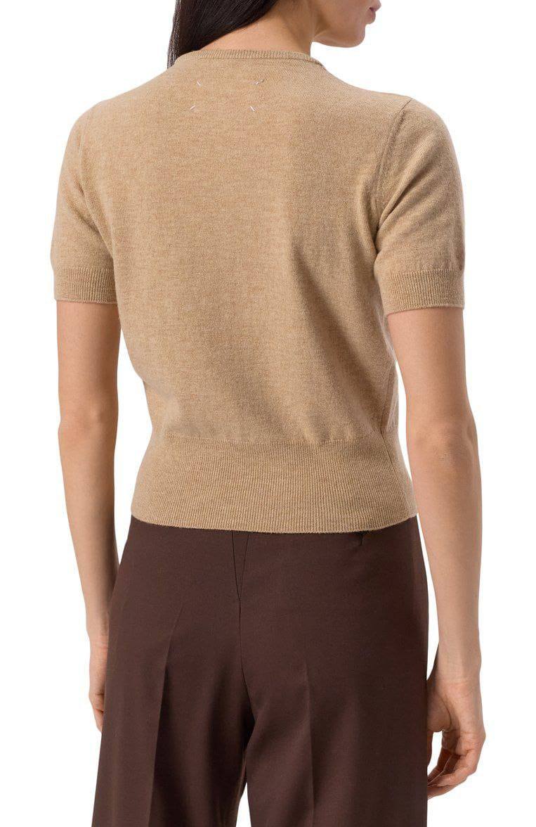 Кофта Maison Margiela LUX-118330 — это элегантный предмет гардероба, который подойдет для создания стильных образов. Кофта выполнена в нейтральном бежевом цвете, с короткими рукавами и круглым вырезом горловины. Идеально подходит для повседневной носки и для составления модных ансамблей.
