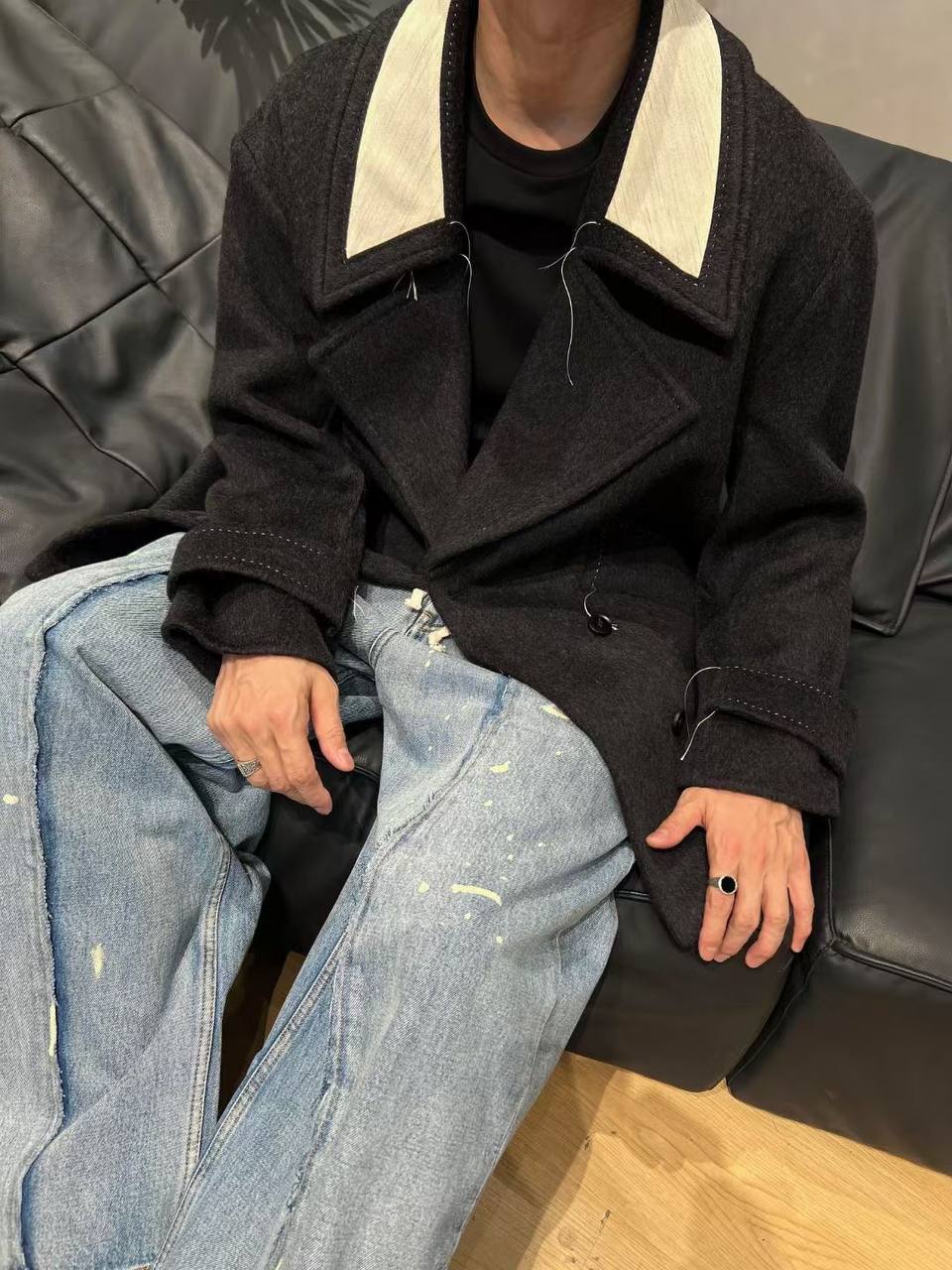 Пальто Maison Margiela LUX-114061 — это стильное двубортное пальто в классическом стиле. Модель выполнена в сером цвете с контрастным воротником. Пальто идеально подойдёт для создания повседневных образов.