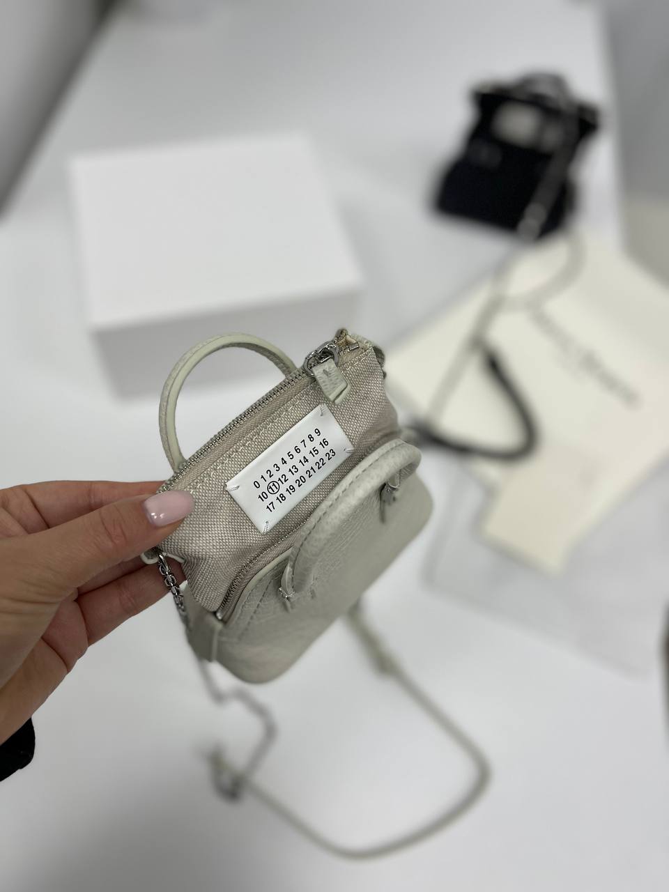 Сумка женская Maison Margiela LUX-84394 выполнена в минималистичном стиле, сочетая в себе элегантность и функциональность. Сумка имеет нейтральный светлый оттенок, который делает её универсальным аксессуаром для различных образов. Сумка небольшого размера, но достаточно вместительная для необходимых мелочей.