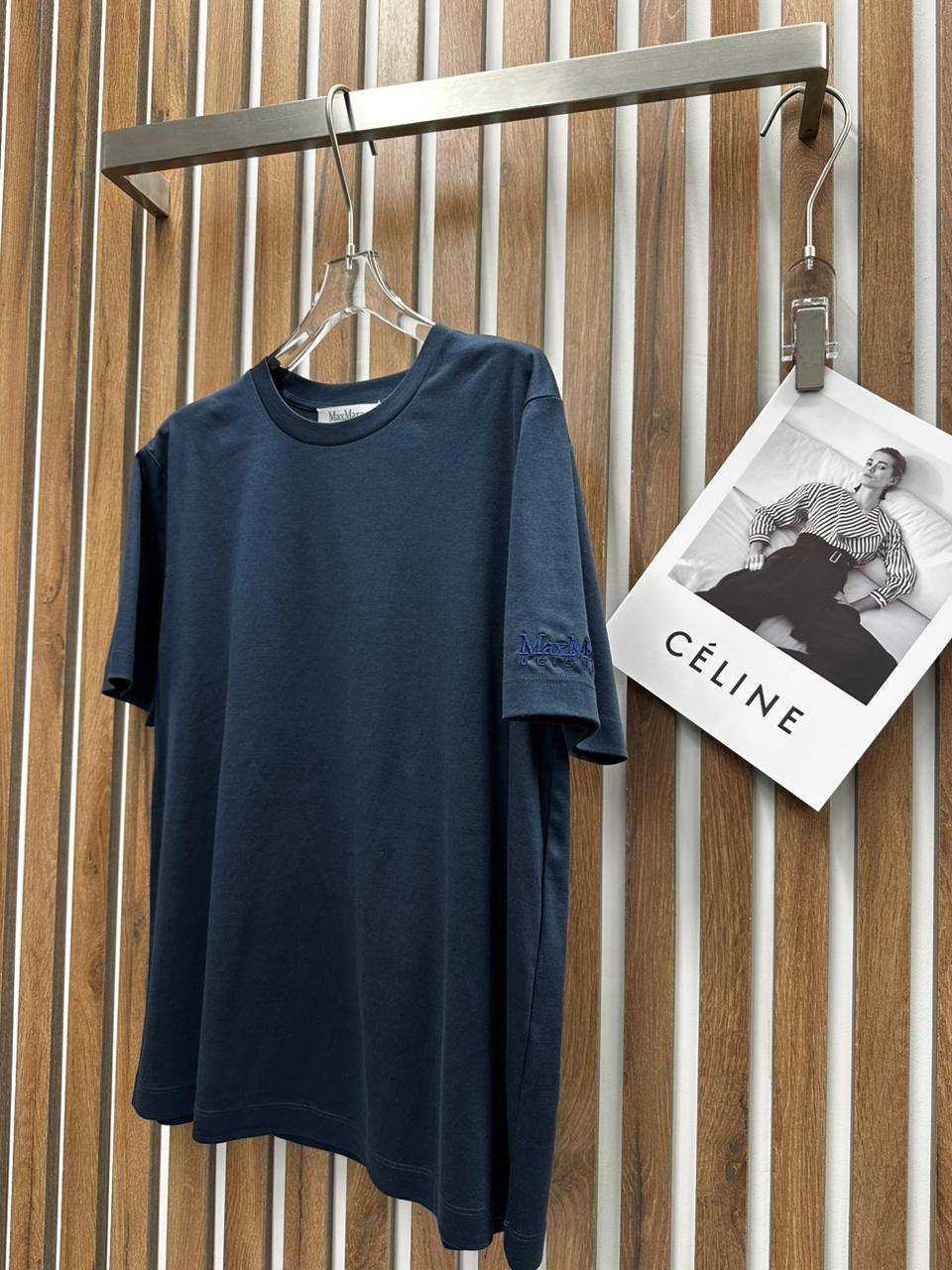 Футболка Max Mara LUX-104268 - это стильная базовая вещь, выполненная в классическом стиле. Она выполнена в темно-синем цвете и имеет минималистичный дизайн с небольшим логотипом бренда на рукаве. Идеально подходит для создания повседневных образов.