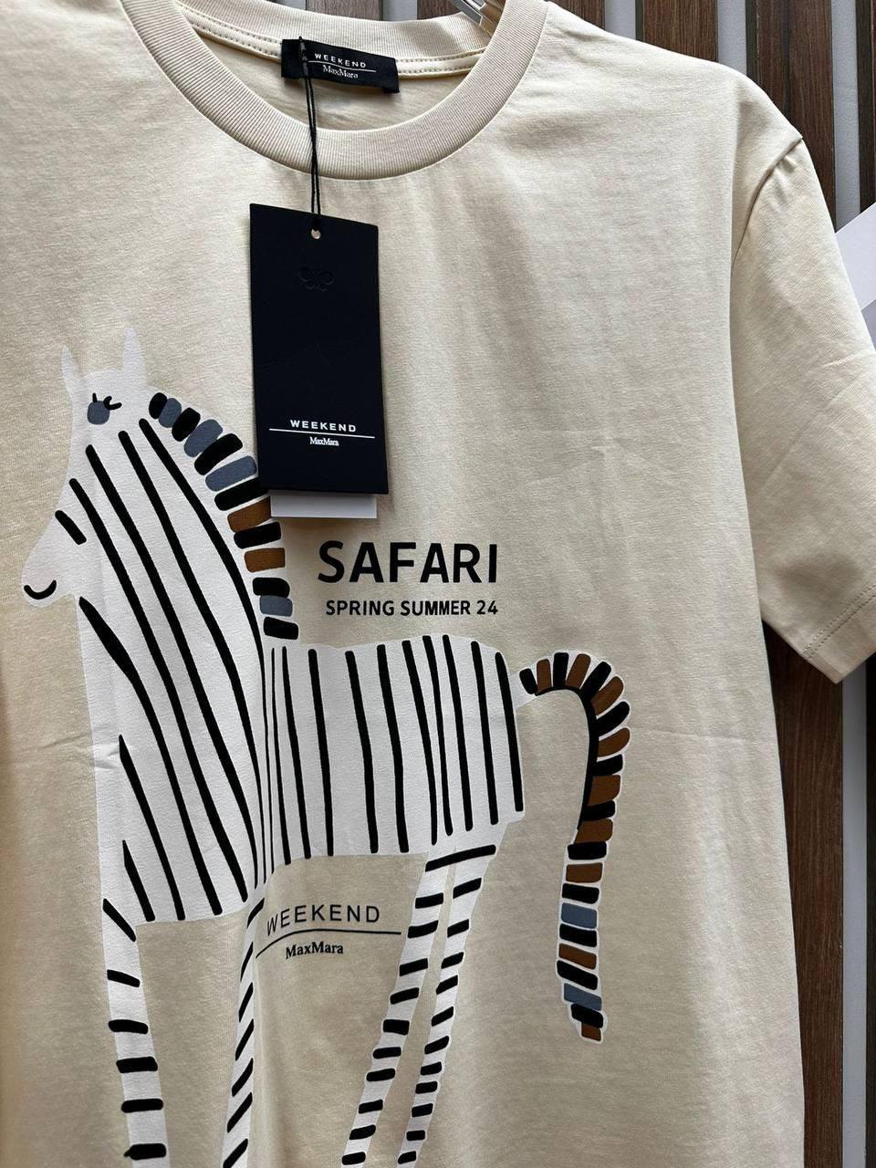 Футболка Max Mara, LUX-118323, представляет собой стильный предмет гардероба, выполненный в повседневном стиле. Базовый цвет изделия - светло-бежевый, с нанесенным принтом зебры. Этот предмет одежды идеально подходит для создания комфортных и модных образов на каждый день.