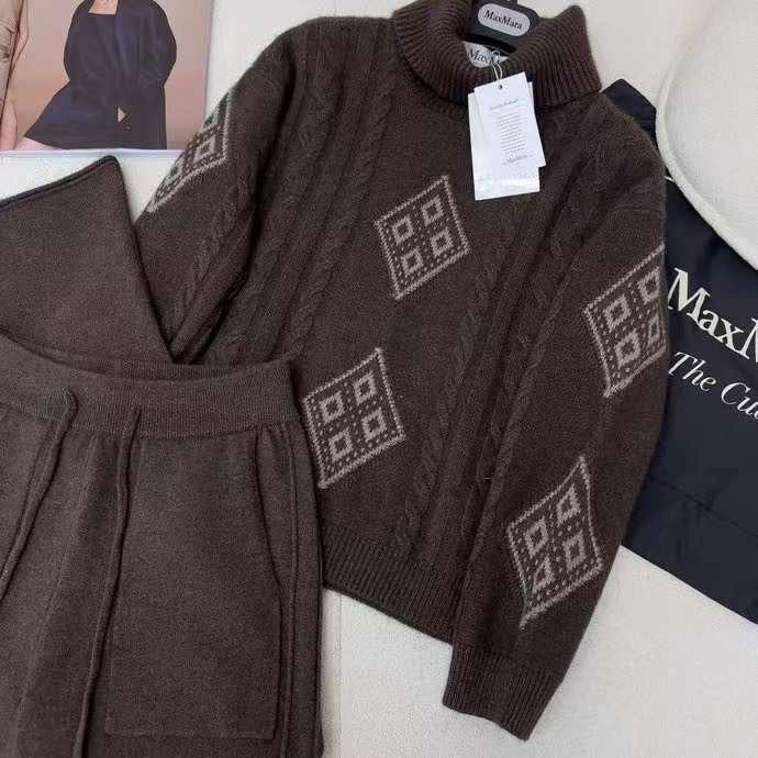 Костюм женский Max Mara LUX-98377 – это стильный и комфортный ансамбль, который состоит из свитера с высоким воротником и брюк. Костюм выполнен в насыщенном коричневом цвете с оригинальным узором. Предназначен для создания элегантных образов на каждый день.