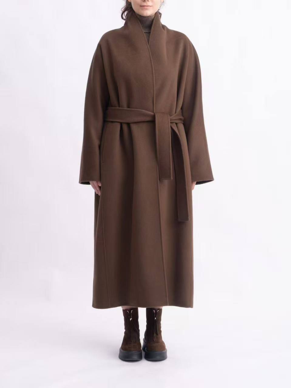 Элегантное пальто Max Mara в классическом стиле, выполненное в спокойном коричневом оттенке. Модель отличается лаконичным дизайном и прямым силуэтом, который дополнен поясом.
