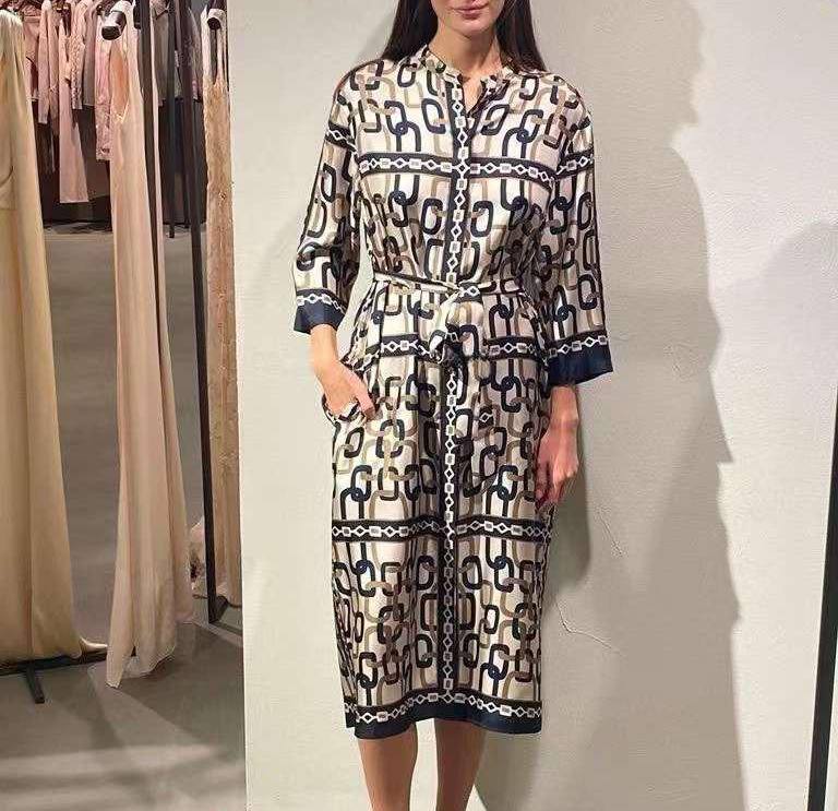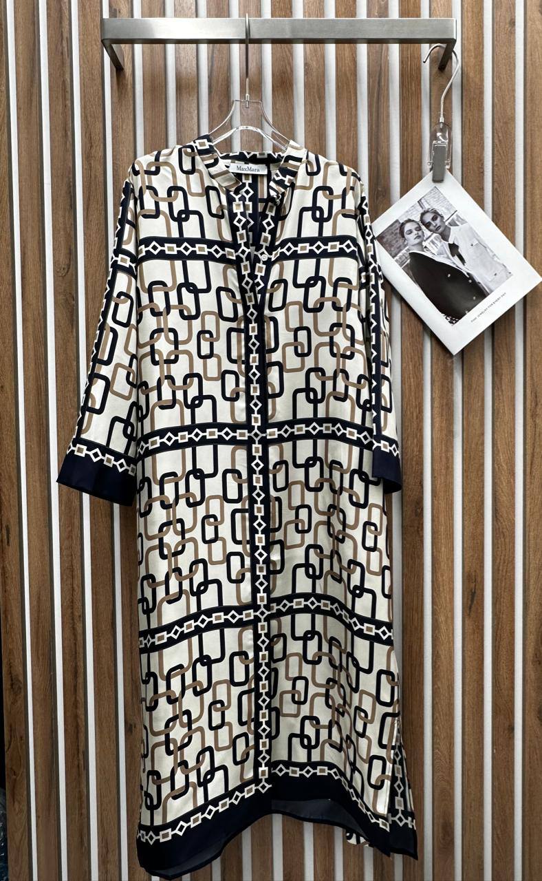 Платье Max Mara LUX-108292 – это элегантное платье в рубашечном стиле с геометрическим узором. Оно выполнено в спокойных тонах и дополнено поясом, подчеркивающим талию. Это платье идеально подходит для создания стильных образов в различных ситуациях.