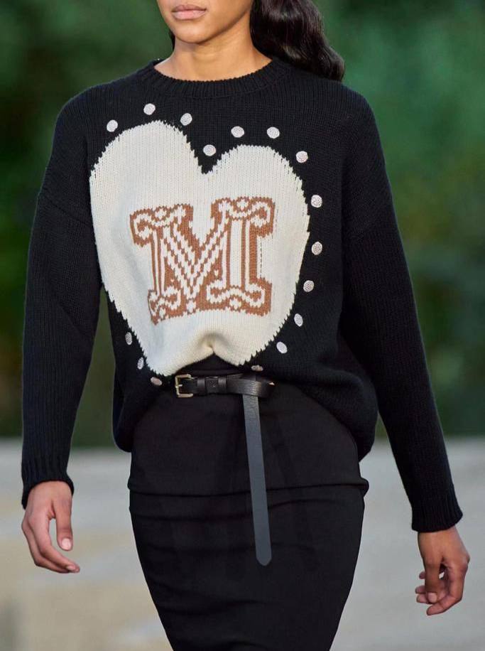 Свитер Max Mara LUX-74833 - это стильный предмет гардероба, который сочетает в себе элегантность и комфорт. Модель выполнена в классическом черном цвете с ярким акцентом в виде большого сердца на груди, украшенного узором и надписью. Этот свитер станет отличным выбором для создания модных повседневных образов.